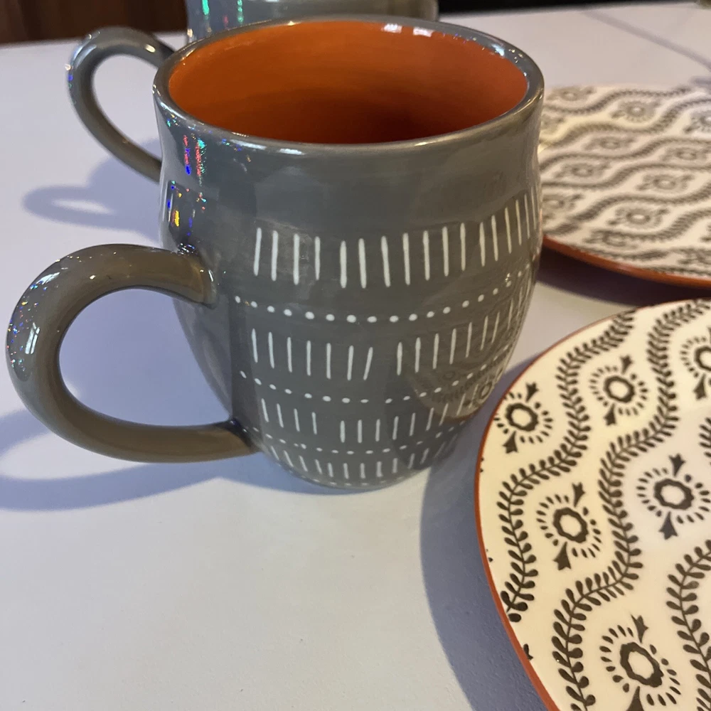 Baum Turquoise 2 Cups 2 Salad Plate Set Stoneware