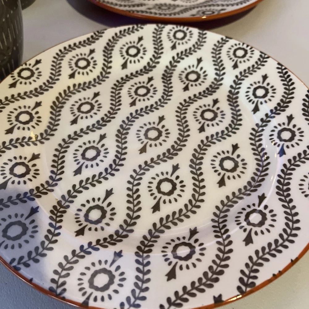 Baum 2 cups 2 salad plate’s turquoise orange bottom