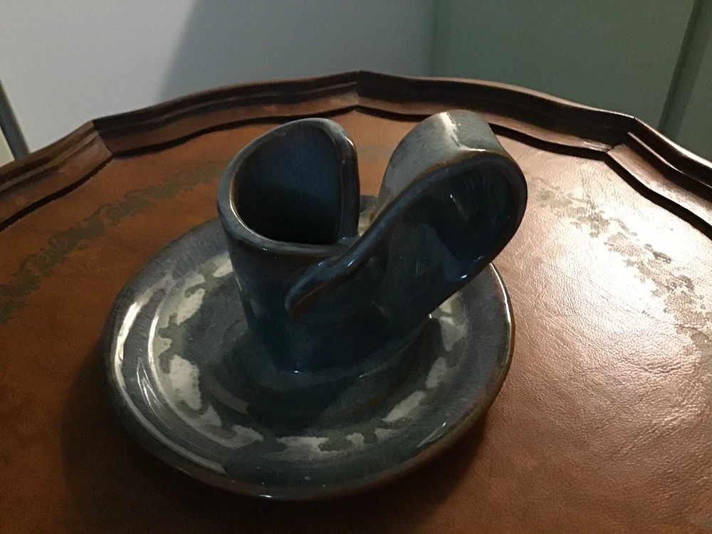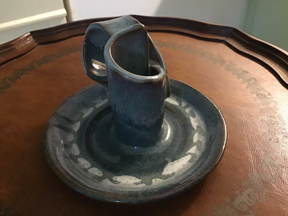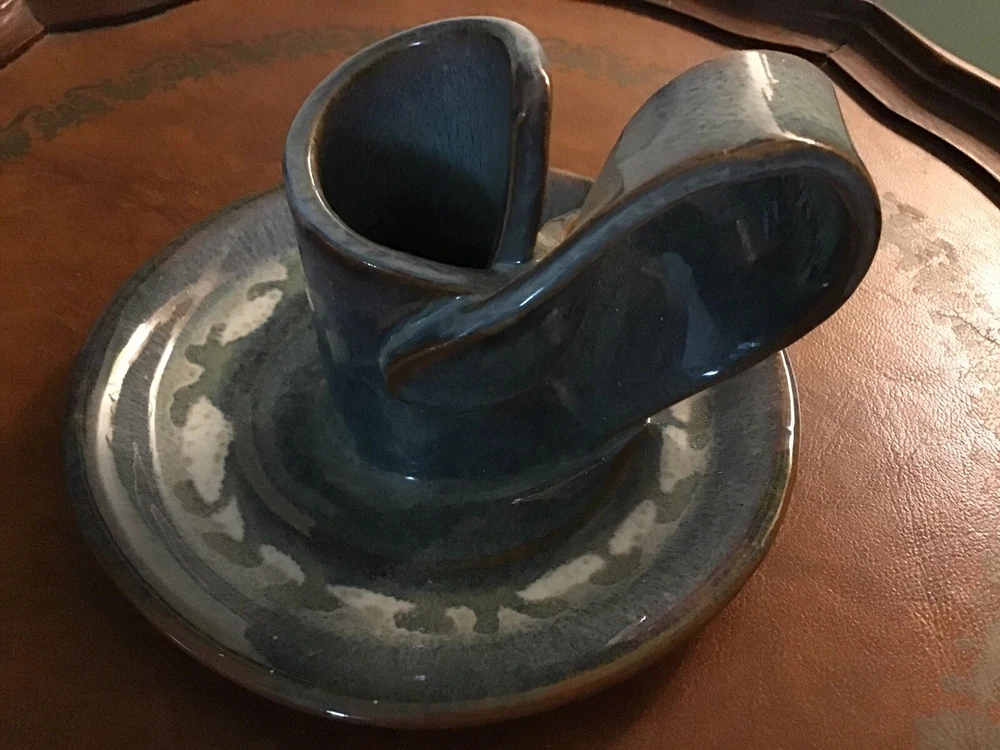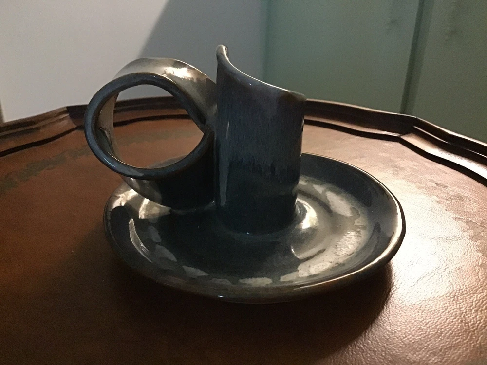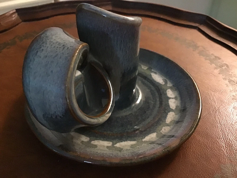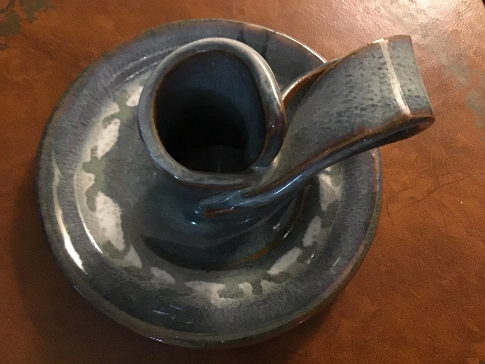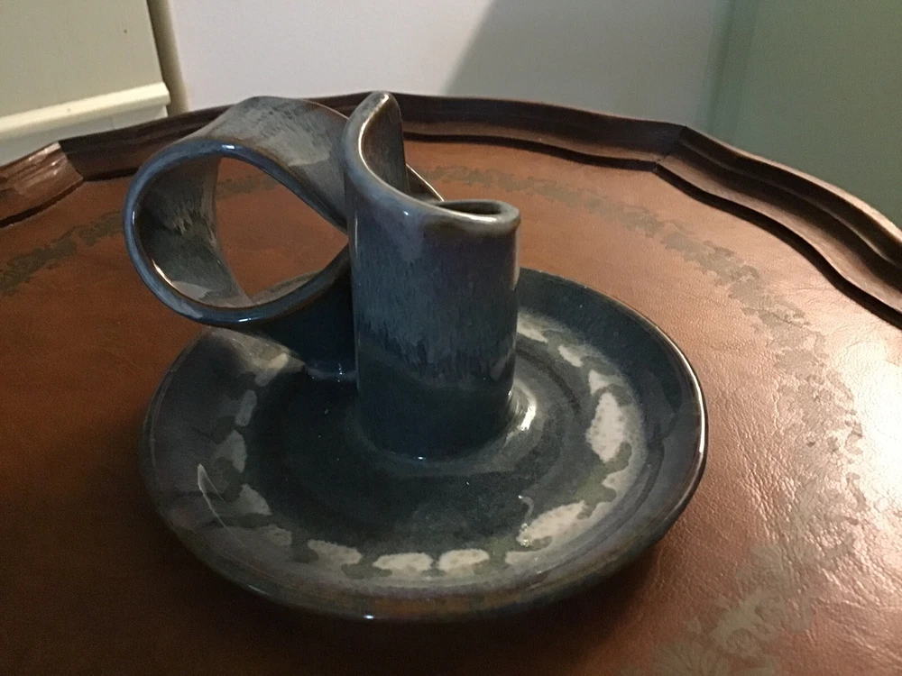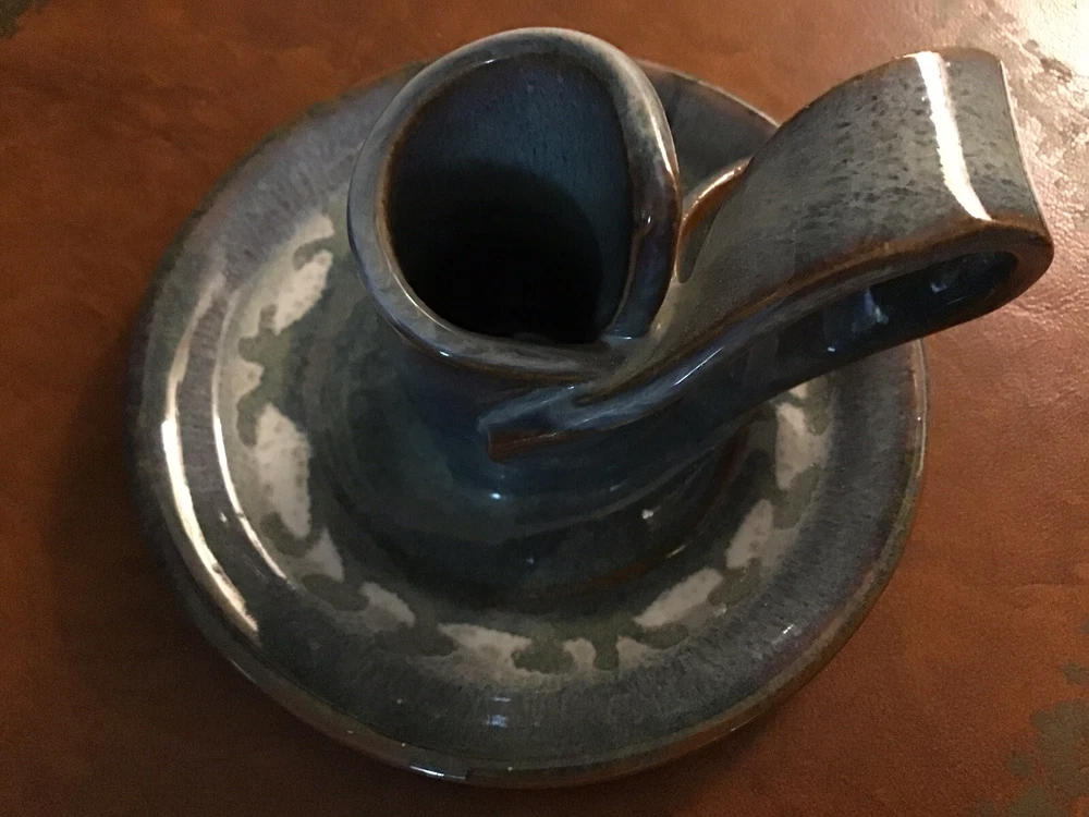 Unusual pottery Candle Holder ,measures approx. 5” tall x 3.25” high From North Carolina Bay pottery..