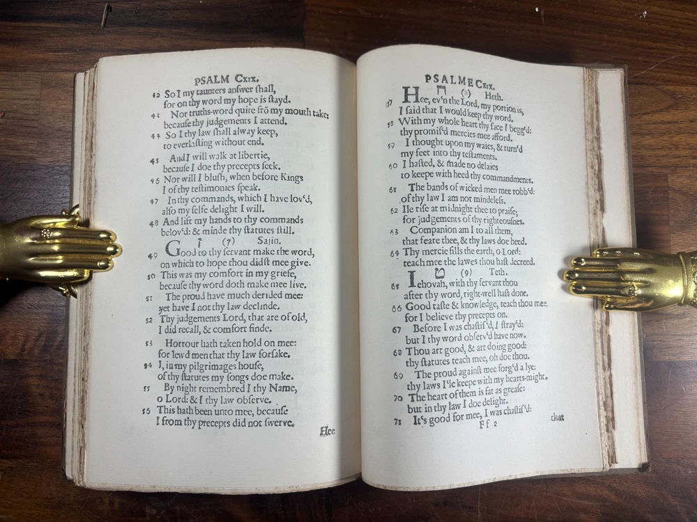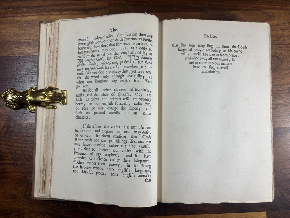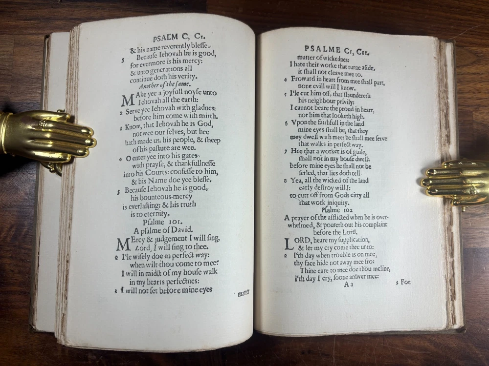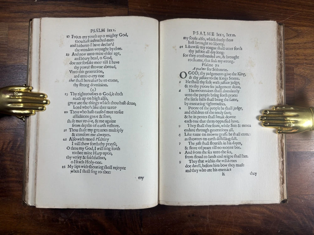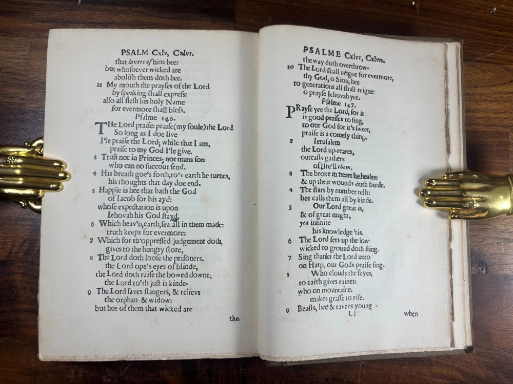 General Information Title: The Whole Booke of Psalmes Faithfully Translated into English Metre ( Bay Psalm Book ) Edition: 1903 Facsimile Reprint (Limited to 1000 copies; 25 on Japan paper, 975 on plain paper) Publisher: Dodd, Mead & Co. Editor/Intro: Introduction by Wilberforce Eames History of the Item The Bay Psalm Book holds a special place in American history as the first book printed in British North America , originally produced in Cambridge, Massachusetts, in 1640 by Stephen Daye. Only 11 known copies of the original 1640 edition survive to this day today. Recognizing the cultural significance of the work, the New England Society commissioned this 1903 facsimile edition , faithfully reproducing the text and typography of the 1640 original. With a limitation of just 1000 copies , it has become a collectible edition in its own right, bridging scholarly study and historical preservation. Why Collect This Book? Historical Importance: Represents the foundation of American printing and Puritan religious life. Limited Edition: Only 1000 copies issued in 1903, making it scarce in its own right. Scholarly Value: Includes an introduction by noted bibliographer Wilberforce Eames. Affordable Alternative: While originals are effectively unobtainable, this facsimile offers an authentic reproduction at a fraction of the cost. Decorative Appeal: A handsome example for display in any Americana, rare book, or theology collection. Condition: Binding: The cover and spine has some wearing/light scraping and a small amount of "fraying" on the corners. Pages: Pages are clean and fully legible, with some foxing found throughout the book and the leaves containing psalms 22 has large staining. (Please see above photos for reference) Structural: Sound, no damage to the overall binding and all pages are secure within the book. Dimensions: Weight - 480g Height - 20.2cm Width - 13.5cm Thickness - 2.3cm