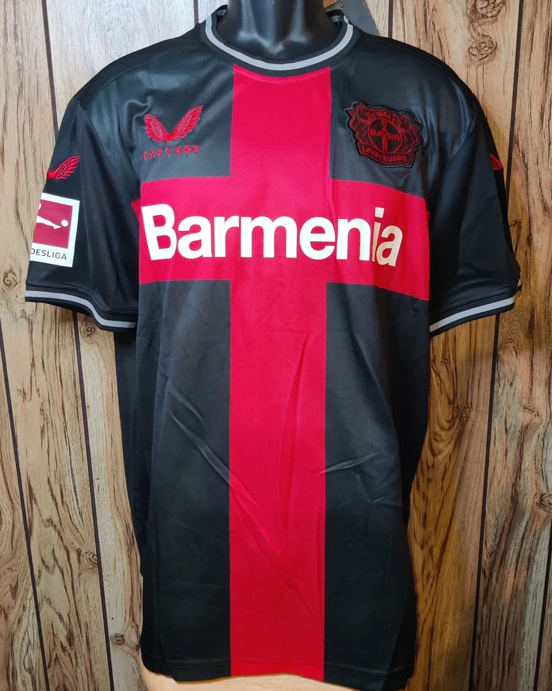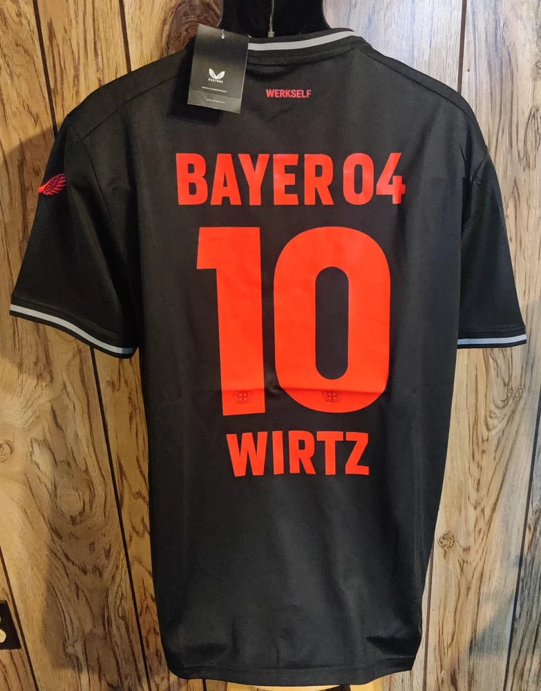 Show your support for Bayer Leverkusen with this black soccer shirt jersey featuring the name and number of star player Wirtz. Made for men in size XL, this jersey is perfect for any soccer fan. Represent your favorite team on and off the field with this high-quality, officially licensed product. The jersey is made in Jersey and features the team's colors and logo. Get ready to cheer on Bayer Leverkusen in style with this fan apparel.
