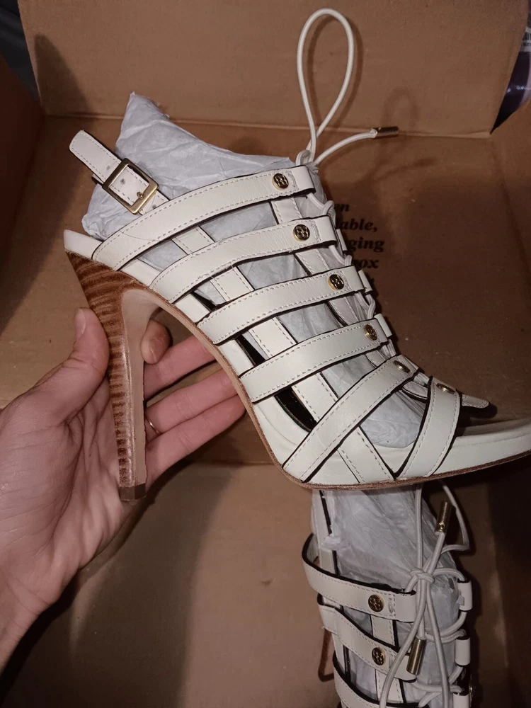 Bcbg Maxazria High Heel Shoes Lace Up Leather Soles White And Brown