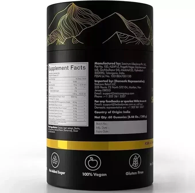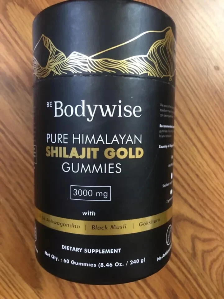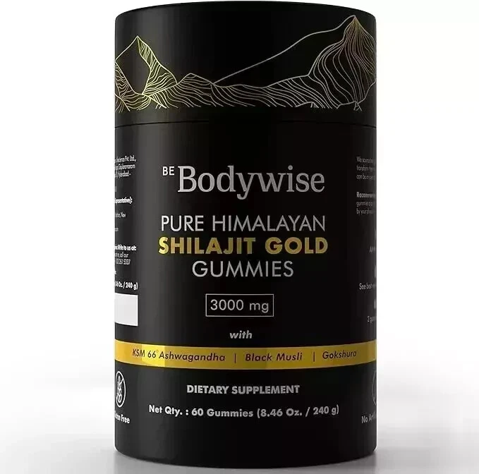 About this item SOURCED FROM HIMALAYAS: Harvested from pristine heights of Himalayan Mountain, our Pure Himalayan Shilajit Gold Gummy contains pure & organic gold grade shilajit, sourced from 18,000 ft above sea level. Especially prepared to aid transformational journey towards wellness by boosting energy and aiding enhanced workout routine & recovery. Our gummy is a modern way of consuming our trusted power packed supplement. LAB TESTED & PREMIUM QUALITY: Be Bodywise Pure Himalayan Shilajit Resin Gold Gummy is “Lab Tested” to be free from heavy metals, fillers, and harmful additives. Crafted in its most authentic form, it has no added sugar, corn starch, glucose syrup, artificial colours, or gum. It's completely vegan, natural, and non-GMO. NATURE’S POWERHOUSE: With "3000 mg Pure Shilajit" , “ No Added Sugar” and infusion of potent ingredients including Ashwagandha, Black Musli & Gokshura; our Shilajit Gold Gummies pack a powerful punch of essential nutrients that are 100% natural and organic. Our Shilajit Gold Gummy comes free of heavy metal and chemical contaminants. Each pack comes with an “Individual Lab Certificate” that guarantees purity and superior quality. STRENGHTEN & REVITALISE: Our Power packed, all-in-one supplement combines potent action herbs like Himalayan Shilajit Resin, Ashwagandha, Saffron, Gokshura and Safed Musli. Every gummy delivers a powerful dose of Shilajit and Ashwagandha. These ingredients help enhance strength, aid post workout muscle recovery and reduce fatigue, giving you a boost to your overall wellbeing. TRAVEL FRIENDLY & INDIVDUALLY WRAPPED: Goodness of traditional ayurveda in a modern avatar; our travel friendly, “individually wrapped” gummies are a delicious way to add natural shilajit to energise your active daily lifestyle & enhanced workout routine. Have 2 Gummies a day for optimal result.