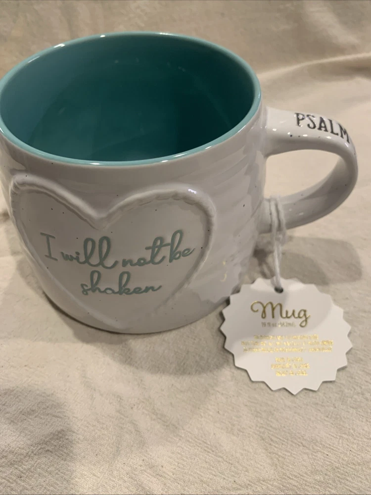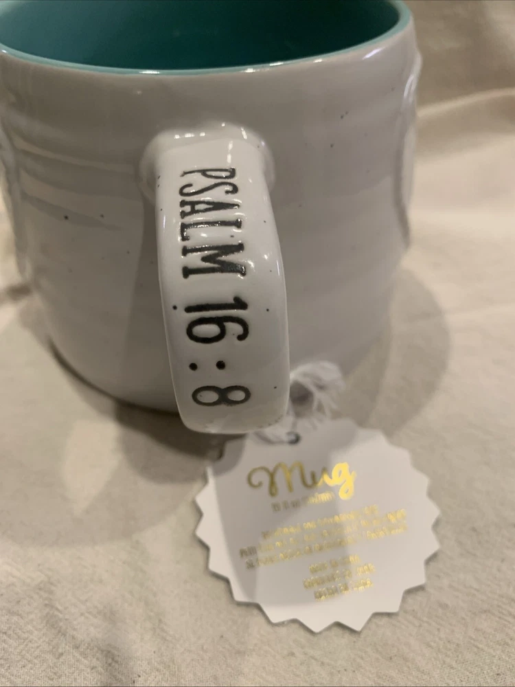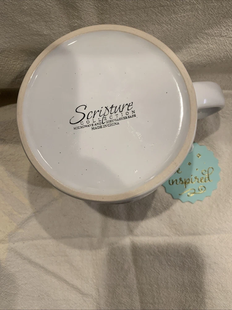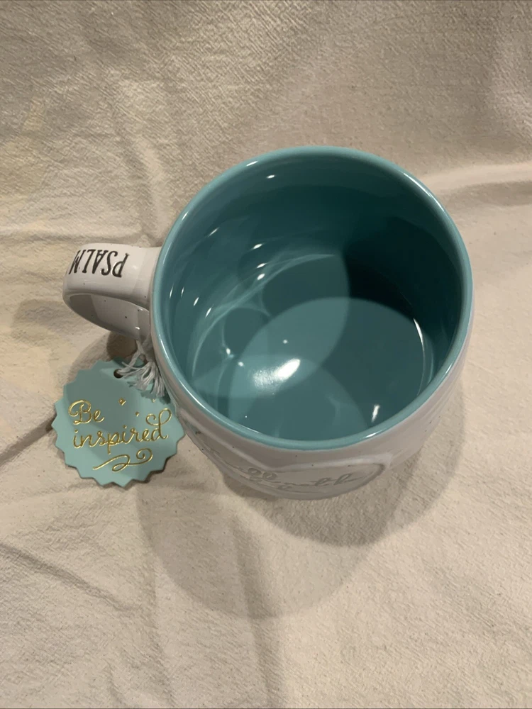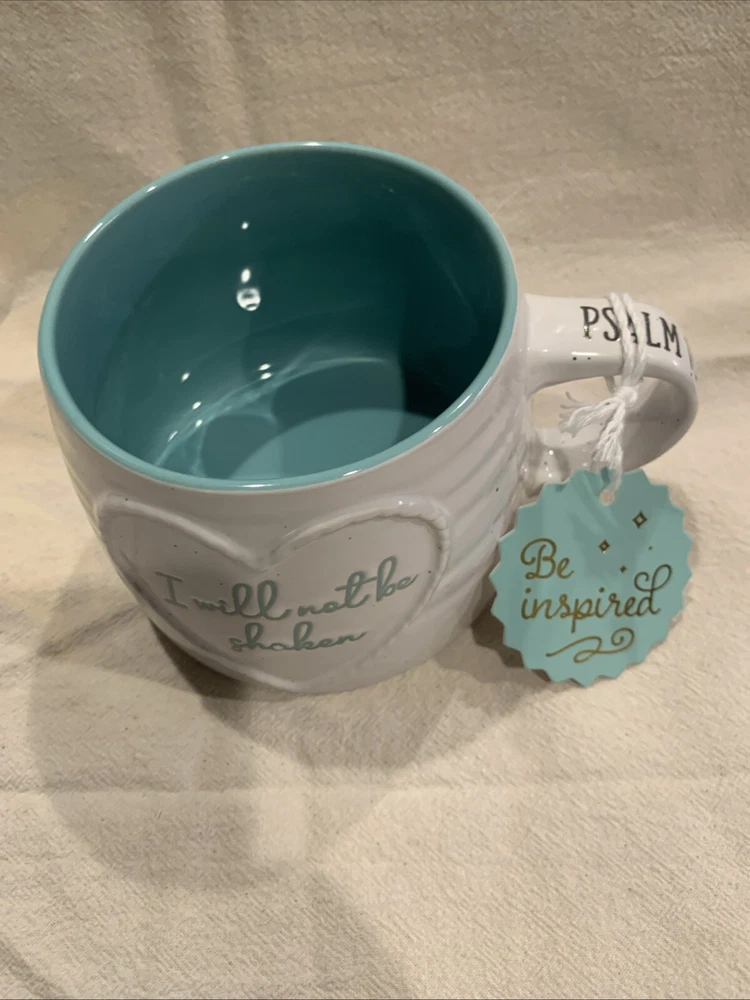 The Be Inspired Coffee Mug is a modern, round ceramic cup with a capacity of 19 fl oz. It features a solid blue color with a happy character and loving family theme. The mug is microwave safe and perfect for all occasions. The brand is White and the model is from the Scripture Collection. It weighs 0.4 lb and measures 3.5 inches in height and 4 inches in width.