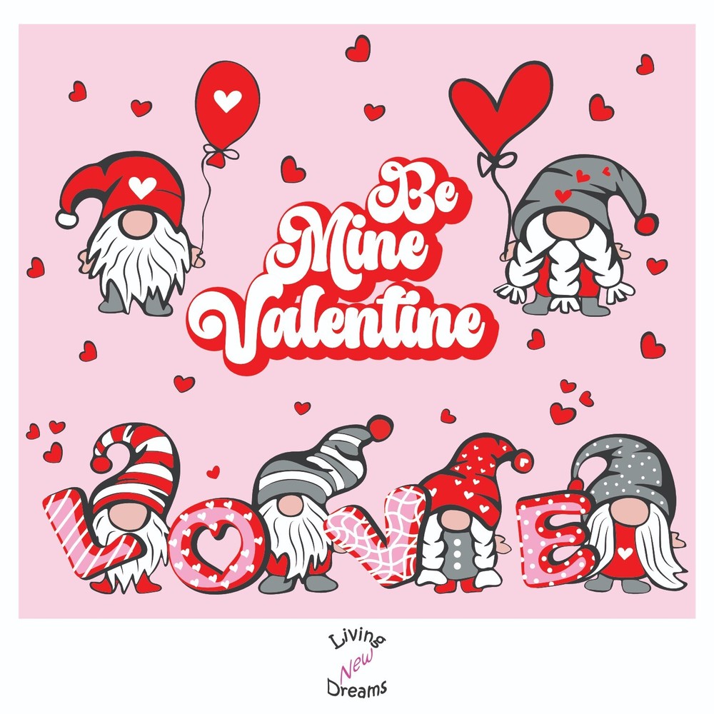 Be Mine Tumbler - Gnome This fun tumbler radiates cute gnomes celebrating Valentines Day. The tumbler can be customized with name a name to make it uniquely yours—or an unforgettable gift for someone special. This tumbler is sure to delight while keeping your beverages at the ideal temperature. Add your name or the name of a loved one to make it truly one of a kind! ~ Spill-proof BPA-Free lid ~ 304 stainless steel ~ Electro polished inside ~ Rust resistant ~ Sweat free ~ Double-Wall Vacuum insulated ~ Flat edge bottom ~ 8.03” h x 2.86” w