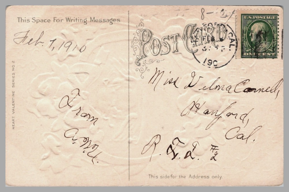 Vintage embossed Valentine postcard featuring a winged angel holding a banner with a romantic verse, framed by ornate lace-style embossing and surrounded by colorful pansy flowers. The design includes soft pastel tones, detailed floral artwork, and raised embossing throughout, giving the card strong visual and tactile appeal. The front reads “Be My Valentine,” with a printed poem expressing affection. A classic early 20th-century Valentine combining angel imagery, florals, and heavy embossing. If you purchase more than one postcard, please let me know if you'd like me to combine shipping. There is no additional cost. Orders under $20.00 are shipped via eBay Standard Envelope the next business day. International Orders ship to eBay's U.S. hub, where eBay completes the shipping process and calculates charges. I add new postcards every day. Click "Save Seller" to be notified when I have added new postcards