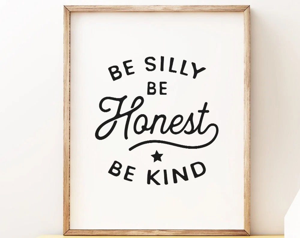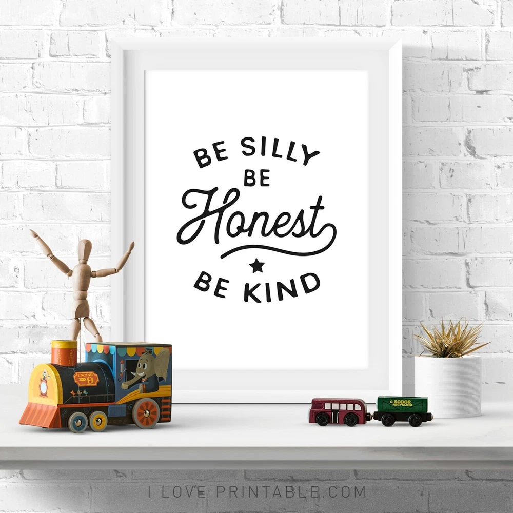 Be Silly Be Honest Be Kind Printable Art Black And White Art Nursery Wall Art Instant Nursery Print Nursery Decor Material: Premium luster photo paper Print type: Inkjet printing One side printed + The finish provides the highest possible resolution and color saturation + Lasts up to 200 years in color and 400 years in black-and-white + Printed on high-quality resin-coated photo base paper medium + Posters can be hung with double-sided tape, tacks, or framed + Hand washing with a gentle cry cloth is recommended for extended durability I will hand select the best choice of paper for your chosen design to ensure top quality results for a beautiful, bright and luxurious print. All prints are sealed in cellophane slips for protection during transportation, and are shipped in a protective cardboard envelope.