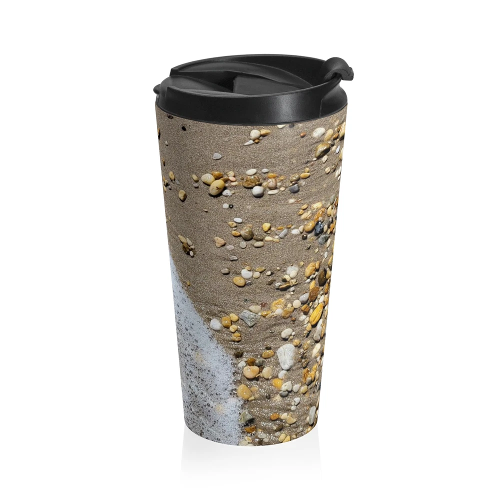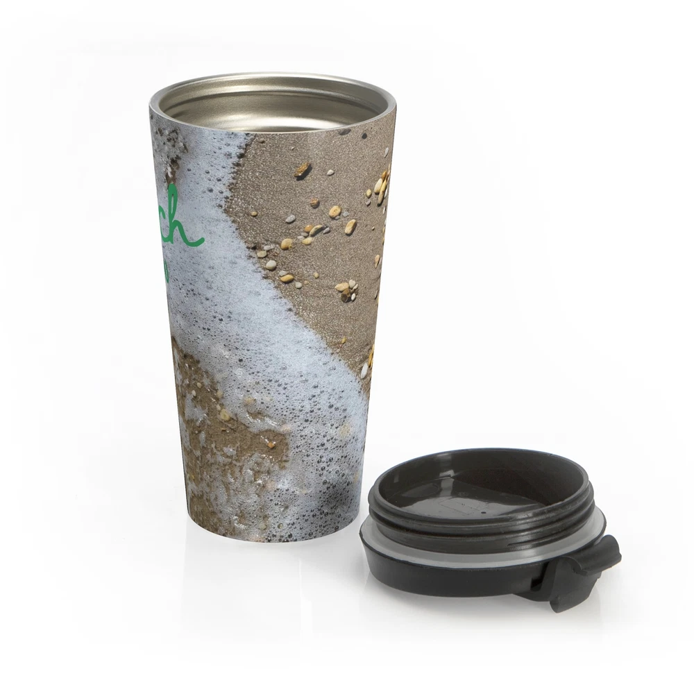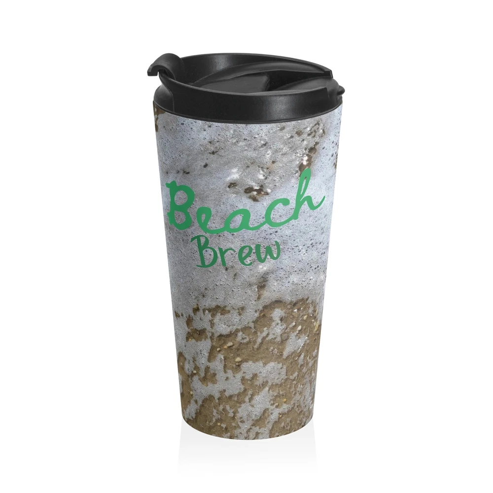 "Beach Brew" Bring your tasty brews with the beach into your everyday. Irreplaceable item for a busy everyday life, this stainless steel mug will keep drinks at the right temperature for hours on the go. High quality sublimation printing makes it an appreciated gift to every true coffee or tea lover. .: Stainless steel .: 15oz (0.44 l) .: Rounded corners .: Black plastic lid