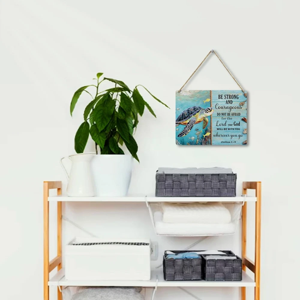 Beach Decor Sea Turtle Gifts Inspirational Christian Bible Verse Wooden Wall Sig