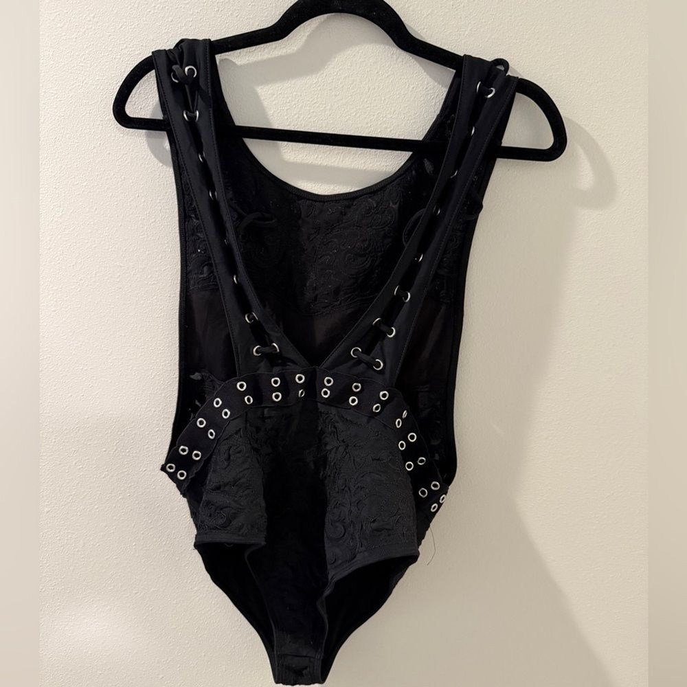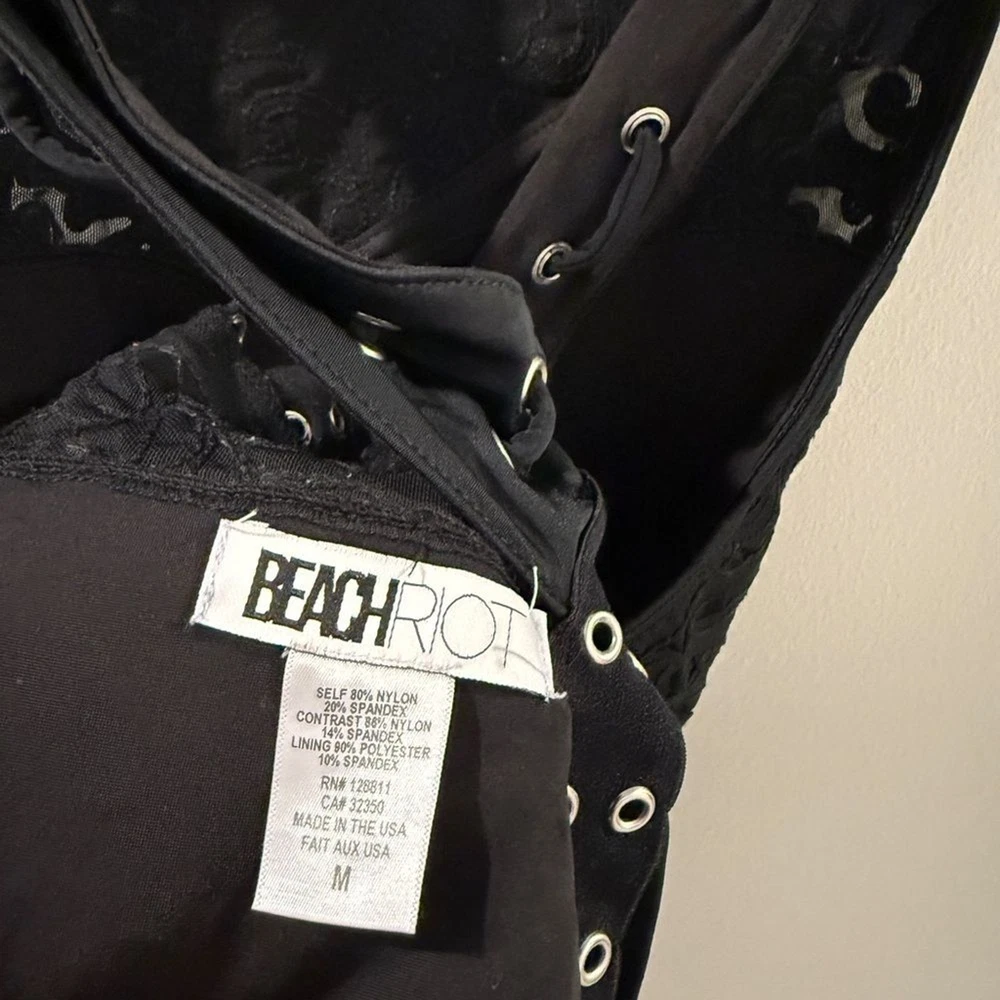 Beach Riot Anthropologie Size M Reckless Race Metallic Grommet Studded Detail Lattice Straps One Piece Swimsuit in Black Please see all pics for wear and condition Overall good used condition with no major flaws Open to offers Smoke free environment Be sure to follow new items posted daily Major discount applied when bundling Ships from Seattle, WA