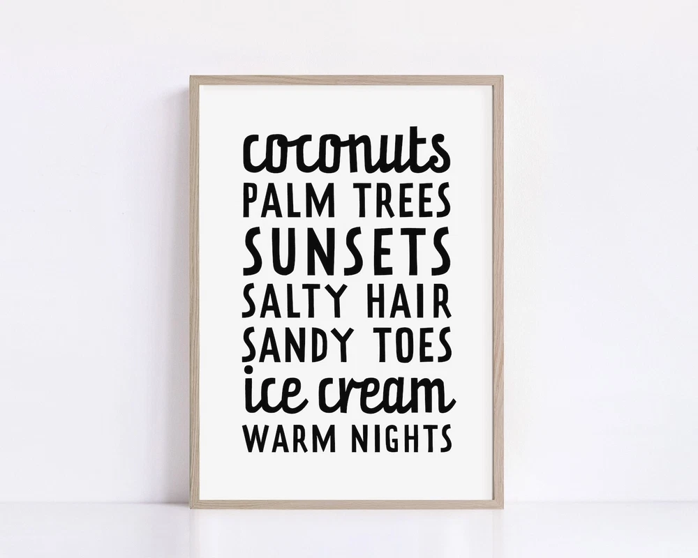 Beach Theme Wall Art Funny Beach Decor Print Beach Home Decor Living Room Wall Art Printable Material: Premium luster photo paper Print type: Inkjet printing One side printed + The finish provides the highest possible resolution and color saturation + Lasts up to 200 years in color and 400 years in black-and-white + Printed on high-quality resin-coated photo base paper medium + Posters can be hung with double-sided tape, tacks, or framed + Hand washing with a gentle cry cloth is recommended for extended durability I will hand select the best choice of paper for your chosen design to ensure top quality results for a beautiful, bright and luxurious print. All prints are sealed in cellophane slips for protection during transportation, and are shipped in a protective cardboard envelope.