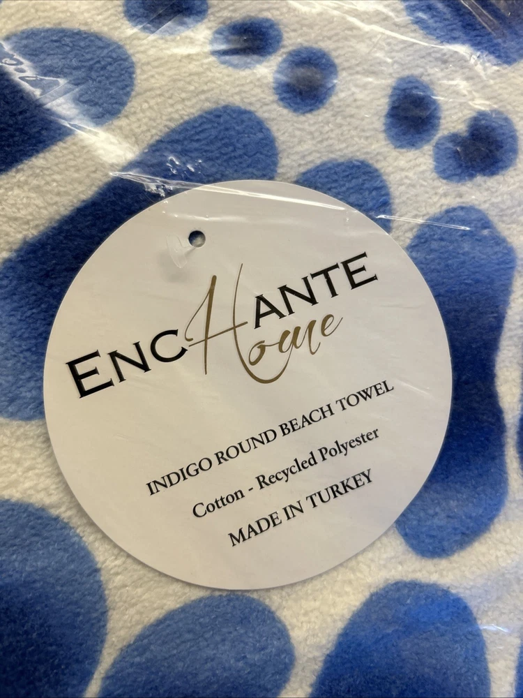 Set Includes:Beach TowelActivity:Beach, Gym, Pool, Sauna, SpaUPC:Does not applyColor:Blue Whitegtin13:Does not applySoftness:SoftRoom:Bathroom, Indoor/OutdoorPattern:IndigoDepartment:AdultsBrand:Enchante HomeCountry/Region of Manufacture:TürkiyeShape:RoundSize:60”Material:Polyester Cotton BlendItem Length:60 in roundType:Beach TowelTheme:Beach, Holiday, Islands, Summer, Sun, Swimming, Travel, Tropical