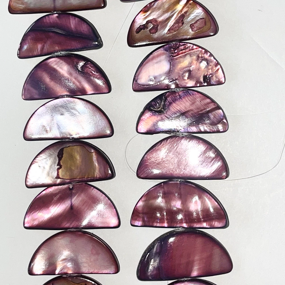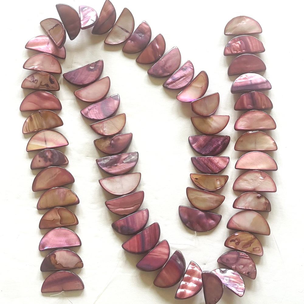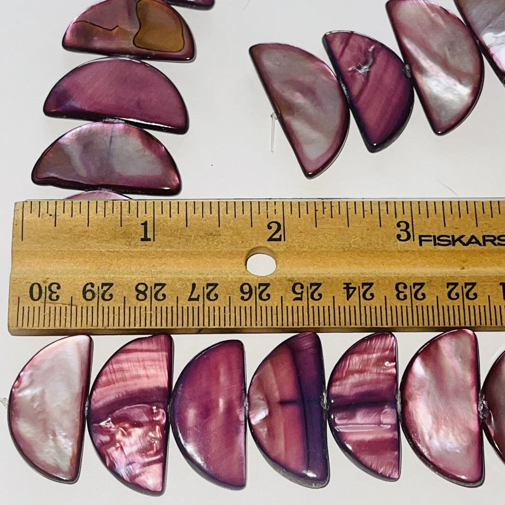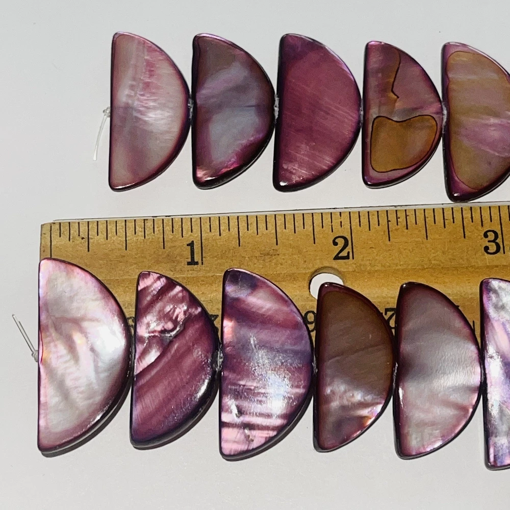Pretty half moon shaped shell beads dyed pink / purple. Lot includes 2 strands with a total of 58 beads. Nice beads for making jewelry or other crafts. Total weight is 5.4 ounces (153 grams). See photos taken with ruler for more detail on size and added description. Please see photos. Zoom for more detail and assessment of condition. Feel free to contact me with questions. I will create custom bundles & give discounts for purchases of more than one item/listing + combine shipping for extra savings. Quotes provided on request. All sales are final. Returns are not accepted; however your satisfaction is important to me. Please reach out if there is a problem with your purchase. Thanks! PassionatelyCollected I passionately collect things.....