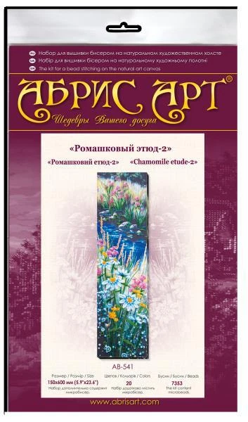 The company "AbrisArt" offers you a wonderful and exquisite Bead embroidery kit Chamomile etude-2 bead embroidery kit, bead embroidery, DIY Embroidery Kit, needlework kit, beadwork pattern, Beading Kit, Embroidery Wall Art, hand embroidery, home decoration, gift from Ukraine. Will be an excellent gift for any occasion. It's very extremely bright and beautiful embroidery patterns. Let the work done according to our scheme with the motifs of bead embroidery kit, bead embroidery, DIY Embroidery Kit, needlework kit, beadwork pattern, Beading Kit, Embroidery Wall Art, hand embroidery, home decoration, gift embroidered on canvas decorate your home and create a feeling of comfort and tranquility. The Natural Art canvas used in these kits is designed to bear the weight of the beads and will keep its shape over time. Your Bead embroidery kit Chamomile etude-2 include design printed in full color on durable natural Art canvas, glass beads Preciosa Ornela, needle for embroidery and instructions are in English. Thread is not included, but any sewing or beading thread may be used. White or transparent thread is recommended. Bead Embroidery kit contains: - schemes for embroidery beads (Art canvas); - beads PRECIOSA ORNELA; - beading needle; - English instruction. The size, сm: 15x60 Number of colors: 20 bead colors Technique: Half-Cross stitch When buying any kit, we give a NICE GIFT from our store. Attention! Frame not included embroidery kit. This product is Made in Ukraine. This is not a Chinese product! IMPORTANT! This is a DIY KIT, not a completed work. Kits for embroidery with beads contains all necessary materials for embroidery: Natural art canvas with printed image, beading needle, high quality Czech glass beads Preciosa, instructions are English. Before start work we recommend read the instruction.