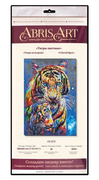 The company "AbrisArt" offers you a wonderful and exquisite Bead embroidery kit Colored tigers bead embroidery kit, bead embroidery, DIY Embroidery Kit, needlework kit, beadwork pattern, Beading Kit, Embroidery Wall Art, hand embroidery, home decoration, gift from Ukraine. Will be an excellent gift for any occasion. It's very extremely bright and beautiful embroidery patterns. Let the work done according to our scheme with the motifs of bead embroidery kit, bead embroidery, DIY Embroidery Kit, needlework kit, beadwork pattern, Beading Kit, Embroidery Wall Art, hand embroidery, home decoration, gift embroidered on canvas decorate your home and create a feeling of comfort and tranquility. The Natural Art canvas used in these kits is designed to bear the weight of the beads and will keep its shape over time. Your Bead embroidery kit Colored tigers include design printed in full color on durable natural Art canvas, glass beads Preciosa Ornela, needle for embroidery and instructions are in English. Thread is not included, but any sewing or beading thread may be used. White or transparent thread is recommended. Bead Embroidery kit contains: - schemes for embroidery beads (Art canvas); - beads PRECIOSA ORNELA; - beading needle; - English instruction. The size, сm: 30x46 Number of colors: 28 bead colors Technique: Half-Cross stitch When buying any kit, we give a NICE GIFT from our store. Attention! Frame not included embroidery kit. This product is Made in Ukraine. This is not a Chinese product! IMPORTANT! This is a DIY KIT, not a completed work. Kits for embroidery with beads contains all necessary materials for embroidery: Natural art canvas with printed image, beading needle, high quality Czech glass beads Preciosa, instructions are English. Before start work we recommend read the instruction.