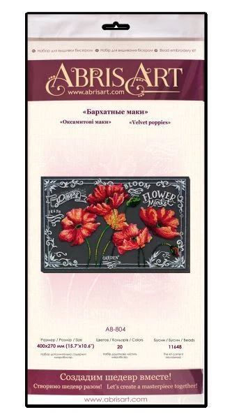 The company "AbrisArt" offers you a wonderful and exquisite Bead embroidery kit Velvet poppies bead embroidery kit, bead embroidery, DIY Embroidery Kit, needlework kit, beadwork pattern, Beading Kit, Embroidery Wall Art, hand embroidery, home decoration, gift from Ukraine. Will be an excellent gift for any occasion. It's very extremely bright and beautiful embroidery patterns. Let the work done according to our scheme with the motifs of bead embroidery kit, bead embroidery, DIY Embroidery Kit, needlework kit, beadwork pattern, Beading Kit, Embroidery Wall Art, hand embroidery, home decoration, gift embroidered on canvas decorate your home and create a feeling of comfort and tranquility. The Natural Art canvas used in these kits is designed to bear the weight of the beads and will keep its shape over time. Your Bead embroidery kit Velvet poppies include design printed in full color on durable natural Art canvas, glass beads Preciosa Ornela, needle for embroidery and instructions are in English. Thread is not included, but any sewing or beading thread may be used. White or transparent thread is recommended. Bead Embroidery kit contains: - schemes for embroidery beads (Art canvas); - beads PRECIOSA ORNELA; - beading needle; - English instruction. The size, сm: 40x27 Number of colors: 20 bead colors Technique: Half-Cross stitch When buying any kit, we give a NICE GIFT from our store. Attention! Frame not included embroidery kit. This product is Made in Ukraine. This is not a Chinese product! IMPORTANT! This is a DIY KIT, not a completed work. Kits for embroidery with beads contains all necessary materials for embroidery: Natural art canvas with printed image, beading needle, high quality Czech glass beads Preciosa, instructions are English. Before start work we recommend read the instruction.