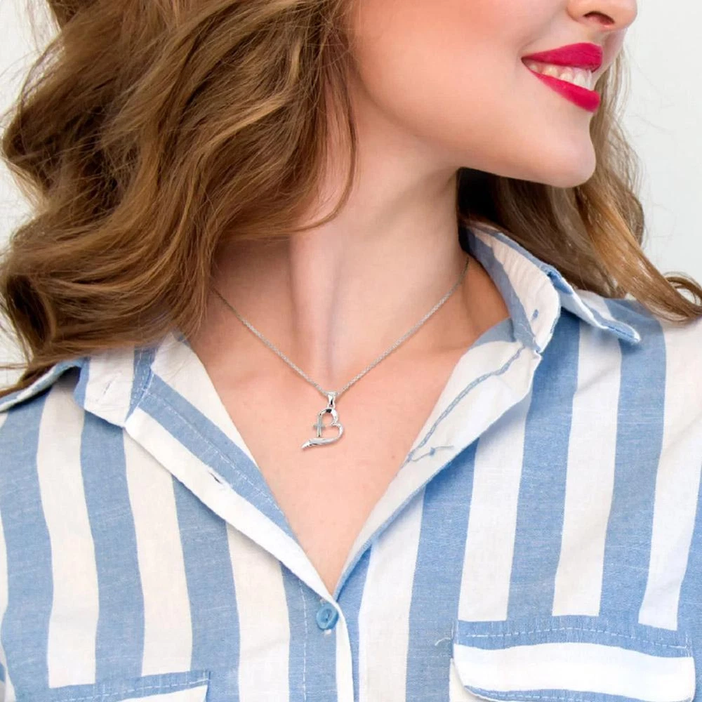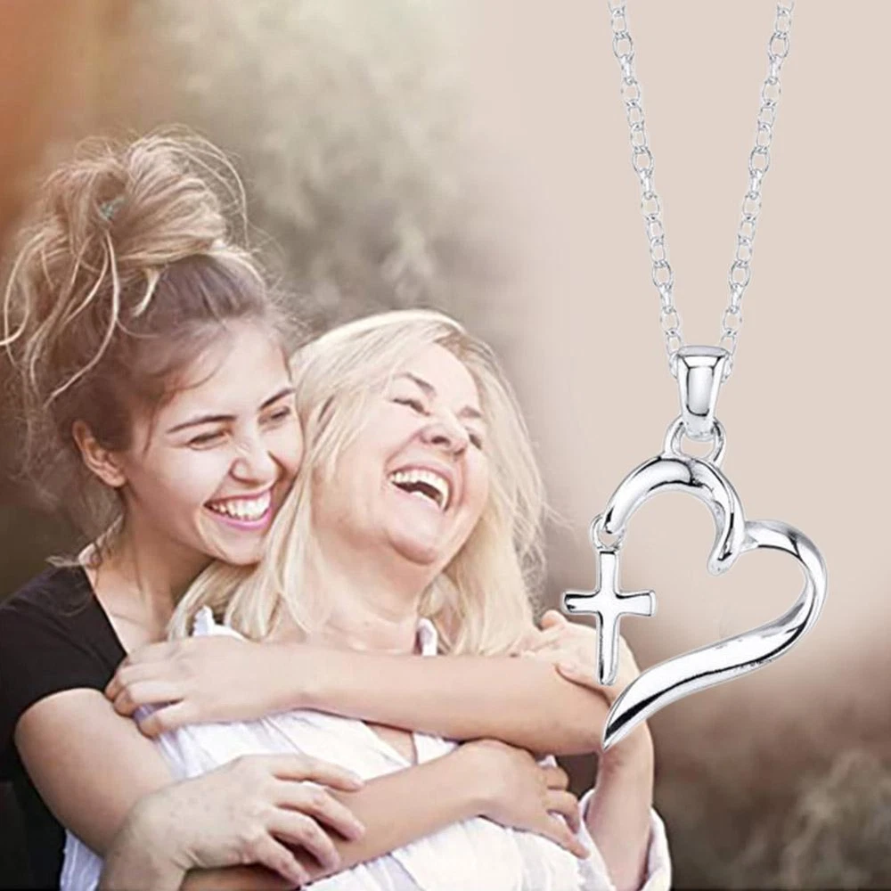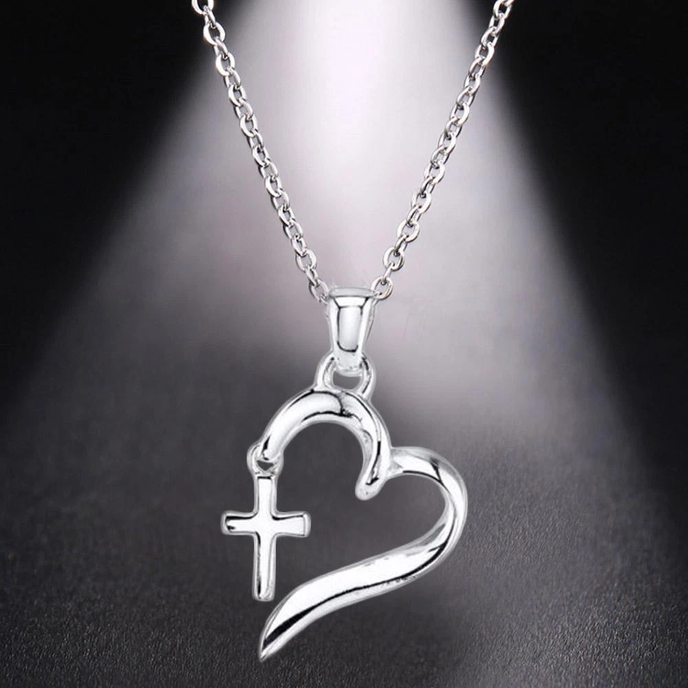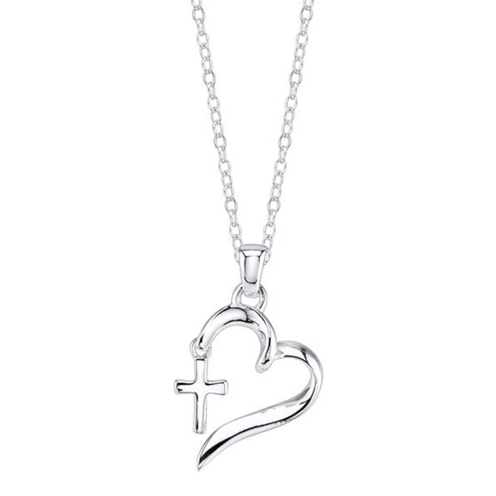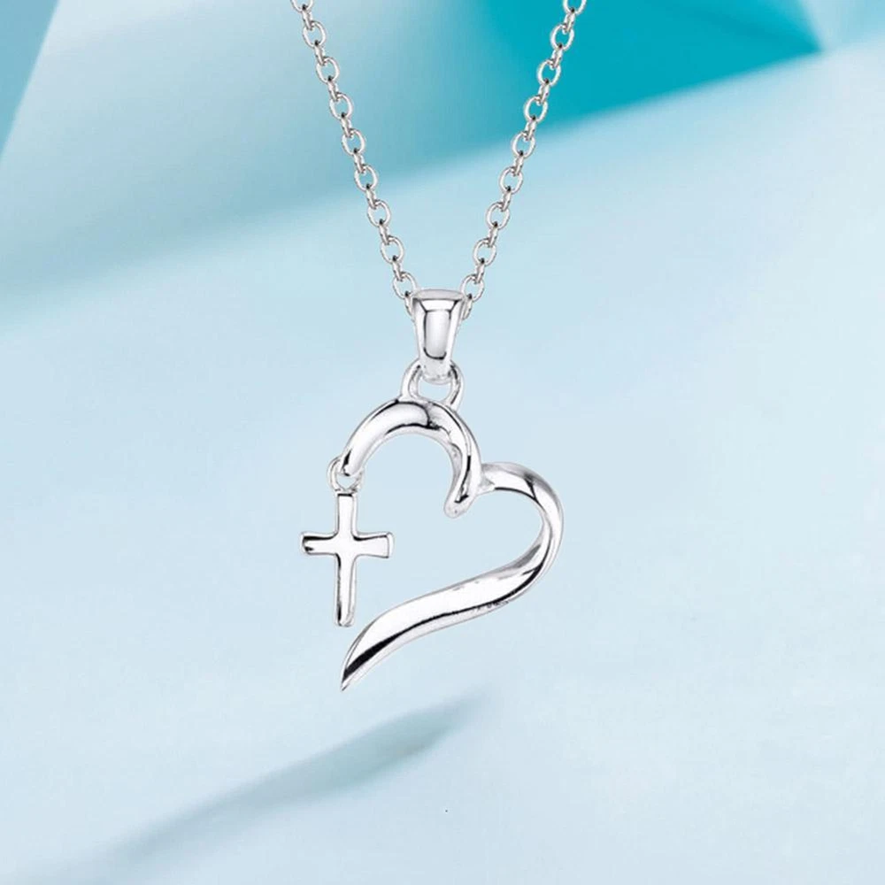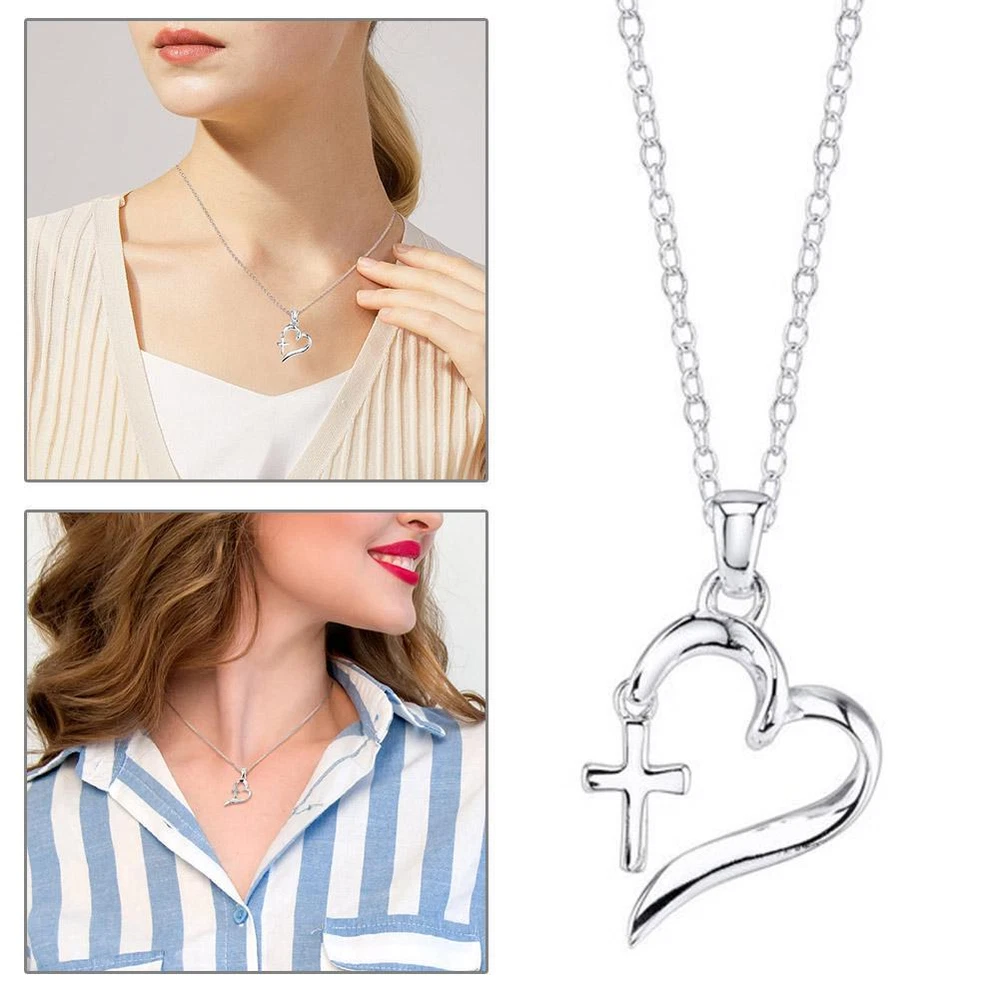 Beaded Heart With Fancy Cross Necklace Silver Colork