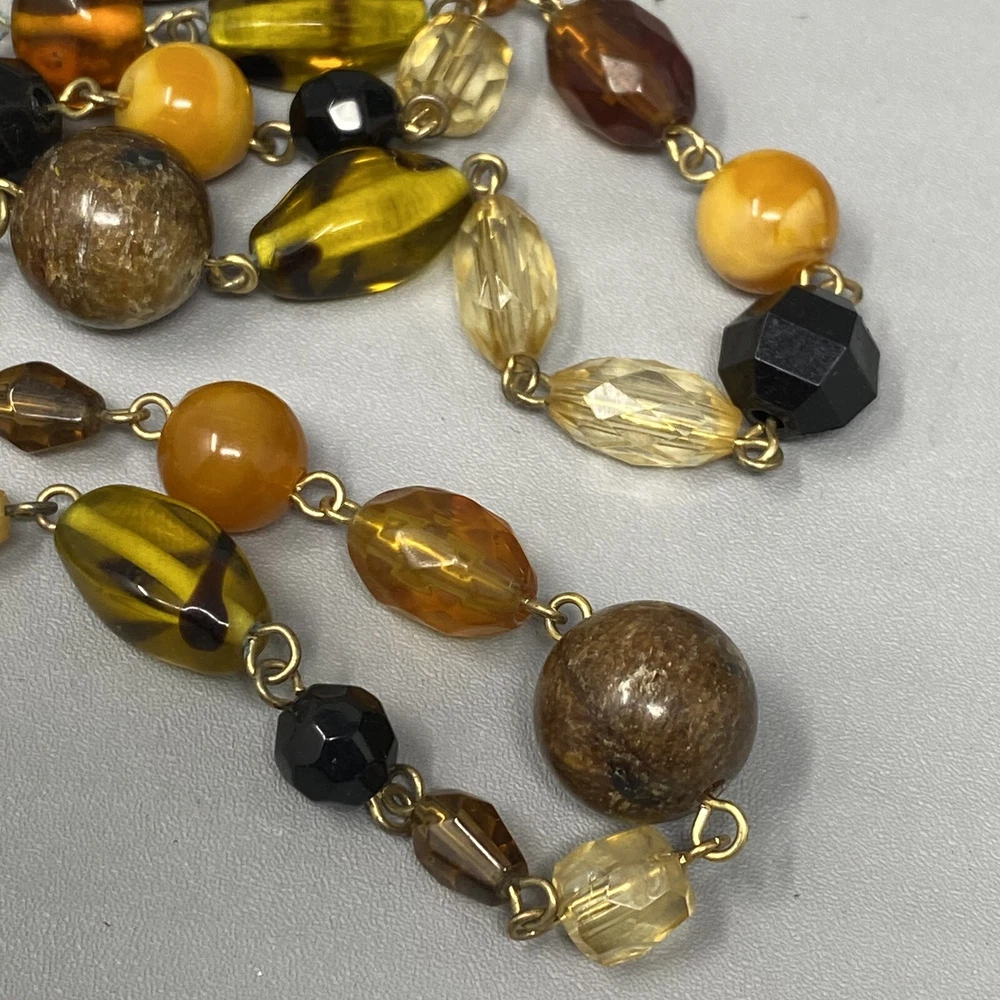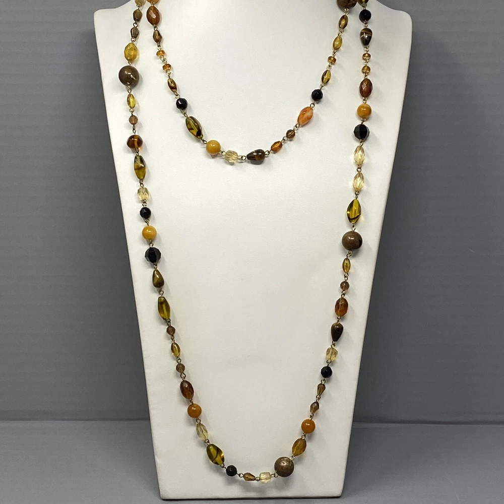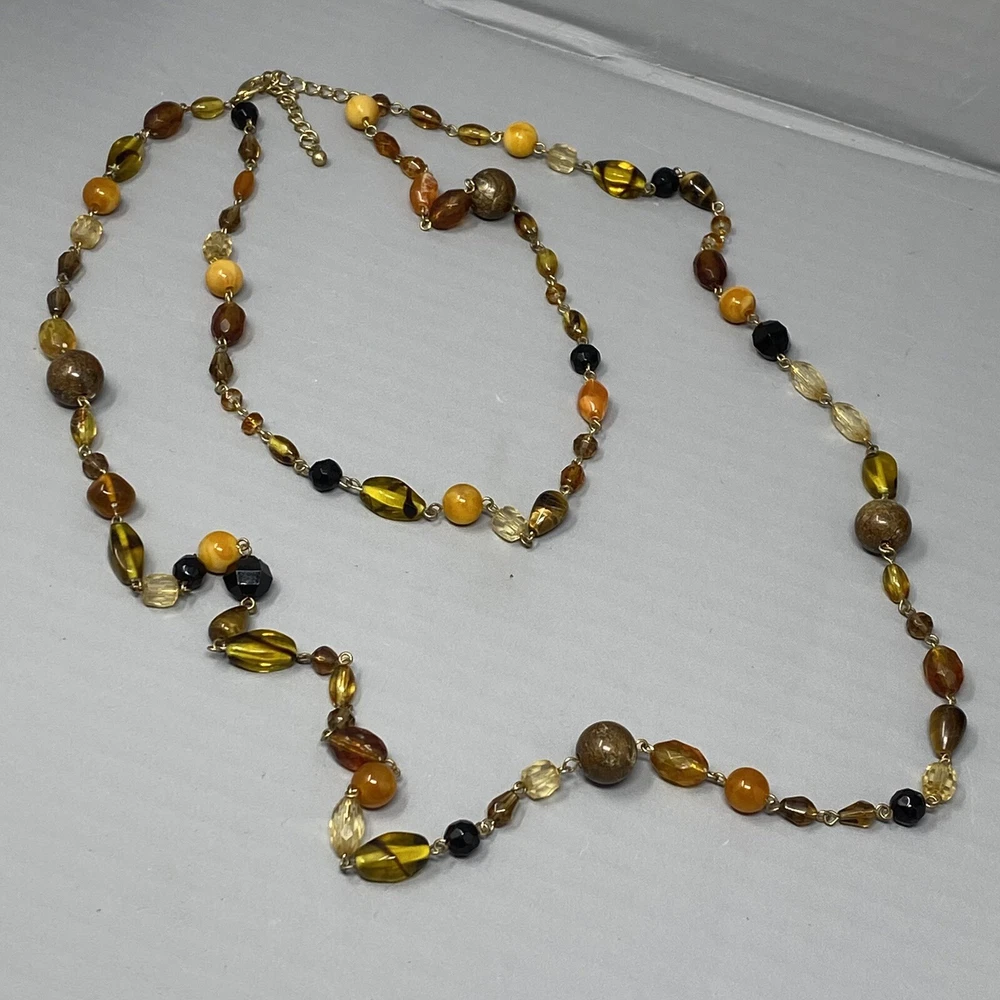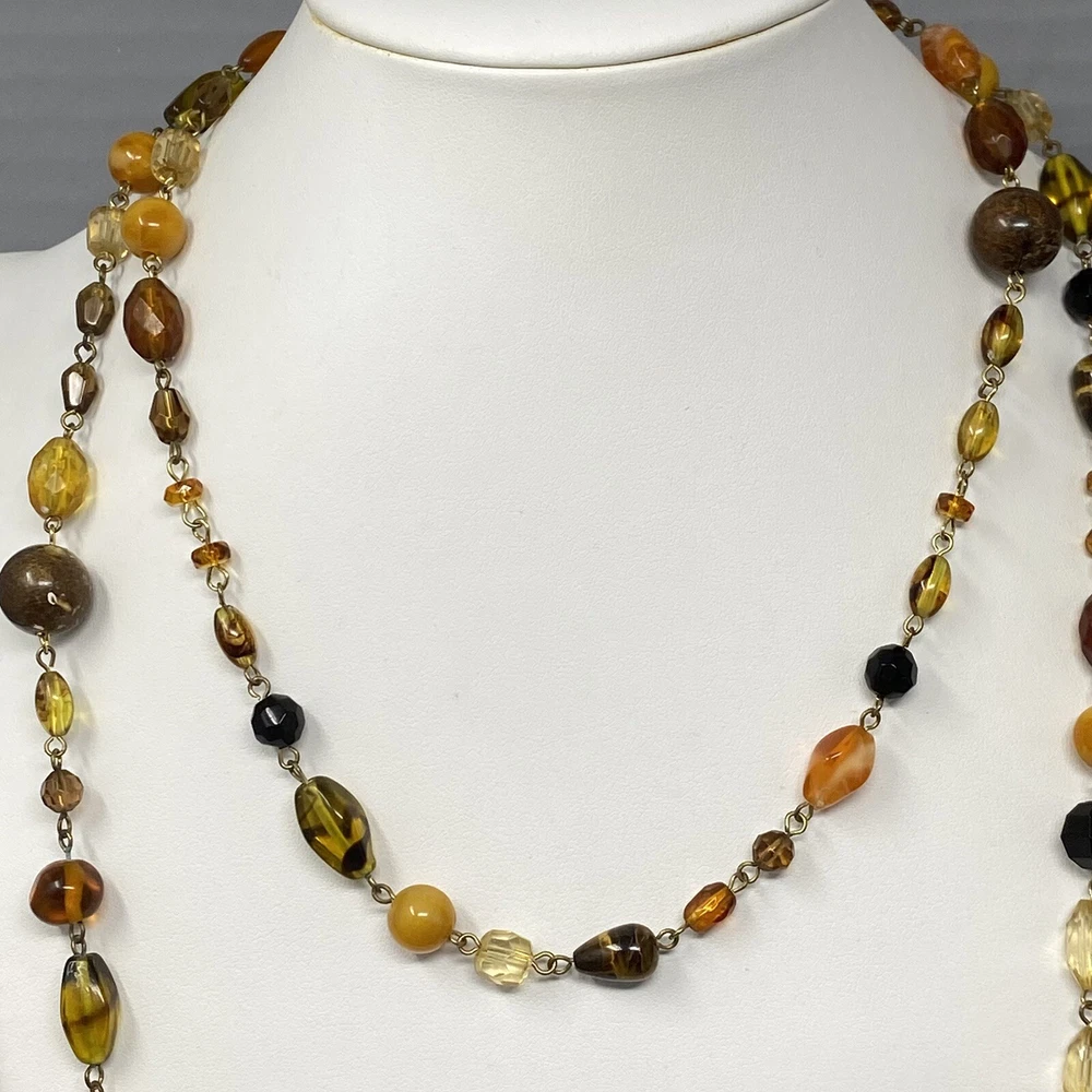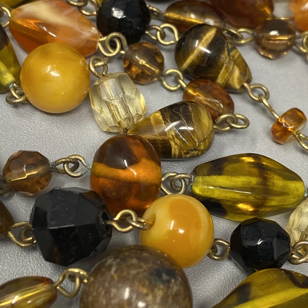 Beaded Necklace Double Strand Short Long Tigers Eye Glass Brown Cream Givre Short strand measures 17" Long strand measures 34" Sizes are approximate and may vary slightly Items may be tested with the Presidium Gem Tester and/or acid tested to ensure accuracy of stones & precious metals Most jewelry ships in Jewelry Gift Box (if it fits) for easy gift giving. We make a trip to the Post Office DAILY (M-Sat) so you can expect QUICK DELIVERY BUY MORE SAVE MORE COMBINED SHIPPING: We offer combined shipping on multiple jewelry items in the same order. If shipping is not adjusted at checkout, please contact us. We list new items daily Please follow our store and check back often