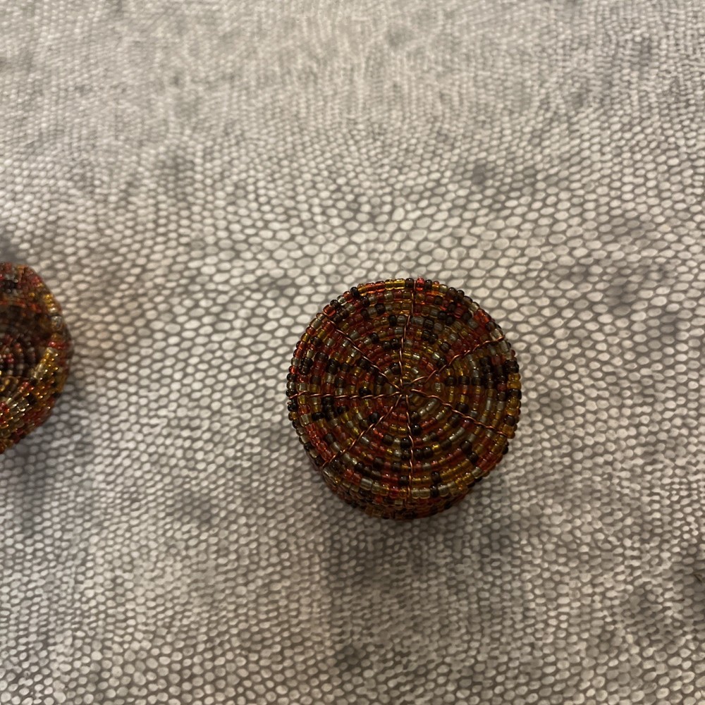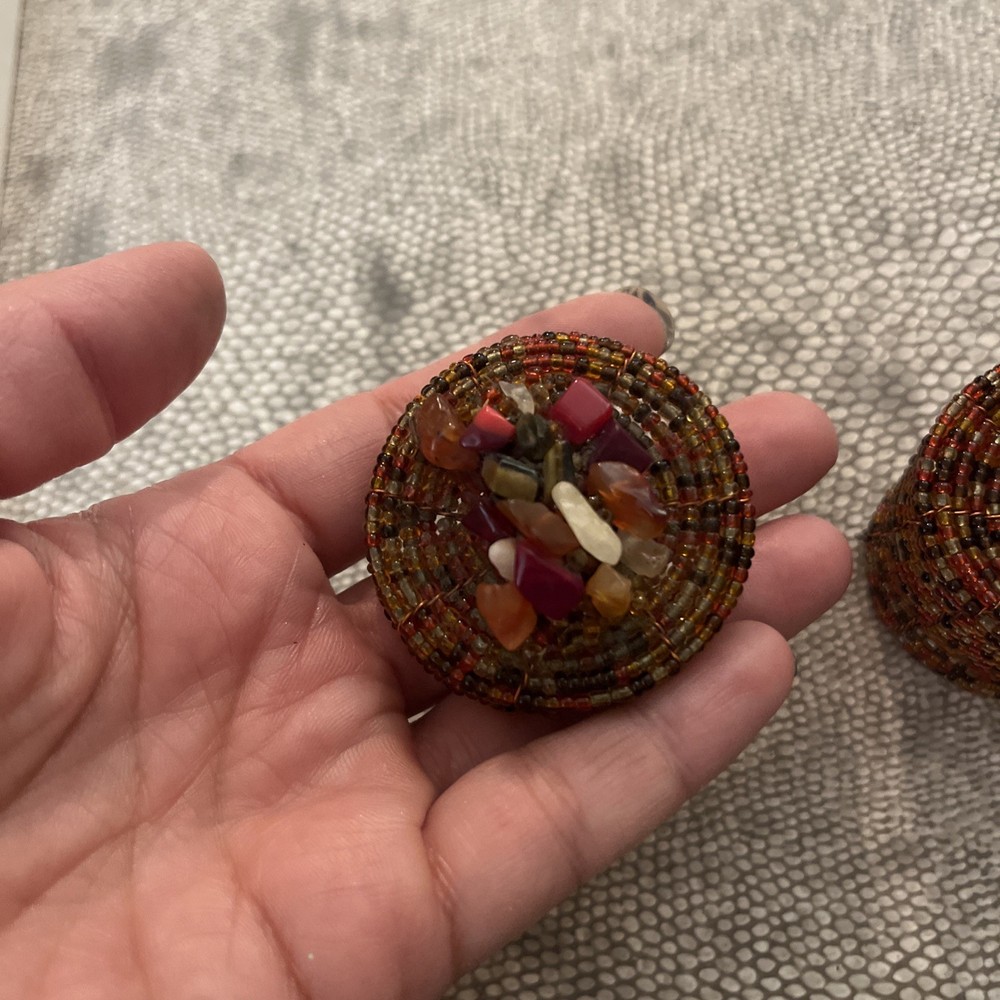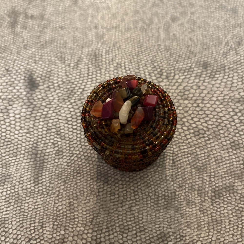 Beaded Trinket Jewelry Box Vintage Round Lidded With Stones Handmade 2" High