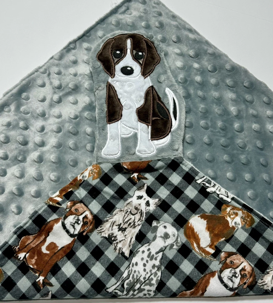 Beagle Puppy Baby Lovey Security Blanket Appliquéd Flannel Minky Baby Gift
