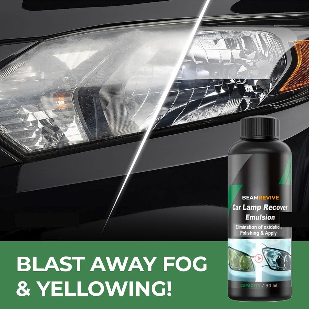 BeamRevive™ Headlight Cleaning & Polishing Solution BeamRevive™ is a non-abrasive formula designed to help improve the appearance of foggy, dull, or aged headlights. It can be used without sanding and is compatible with plastic, polycarbonate, and glass lenses. This product is suitable for routine car maintenance and helps support cleaner, clearer-looking headlight surfaces. Features No-Sand Cleaning Formula Helps Reduce Visible Haze and Buildup Compatible With Multiple Lens Materials Simple, Wipe-On Application Ideal for Regular Auto Care Routines No guarantees of specific outcomes. Results vary depending on lens condition. How to Use Shake well. Apply a small amount to a cloth. Use gentle circular motions to polish the lens. Wipe off with a clean microfiber cloth. Suitable For Plastic headlights Polycarbonate lenses Glass headlights Exterior headlight surfaces (Not for use on interior electronics or tinted films.) Condition Brand new, unused, sealed.