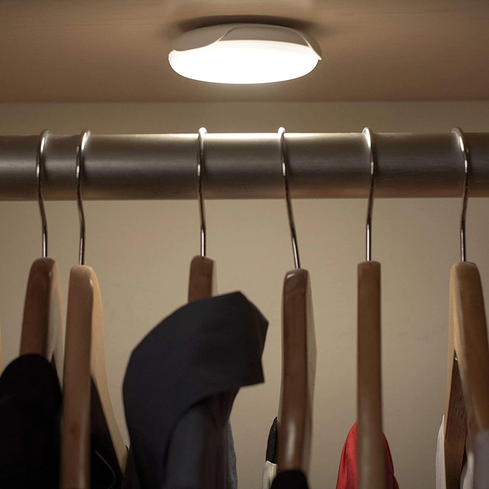 Mr. Beams Wireless LED Puck Light provides convenient hands-free light around the home. The battery-operated puck light’s intentional design includes Mr. Beams signature features, including motion activation, auto shut off, easy installation and long battery life. Its unique diffuser creates a balanced light pattern, making it the perfect under cabinet light for kitchen counters, cupboards, closets, shelves and any other workspace in the home. Battery-operated LED puck light provides 30 lumens of bright white light, perfect for under cabinets, cupboards and shelves. Motion and light sensors ensure the light is only activated when motion is detected in the dark. Auto shut off after 20 seconds of no motion helps prolong battery life. Easy, wireless installation takes less than 5 minutes with the included mounting hardware or double-sided adhesive. The puck light’s intuitive bracket design allows for easy mounting and battery . Designed to get approximately year of light on each set of batteries (not included) with average use of 8 activations a night. The LED puck light’s unique diffuser provides a pleasing and balance light pattern, perfect to light kitchen counters, cupboards, closets and shelves.