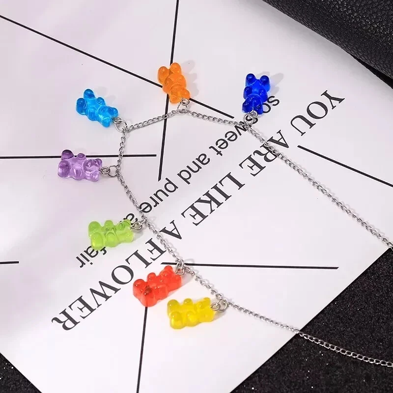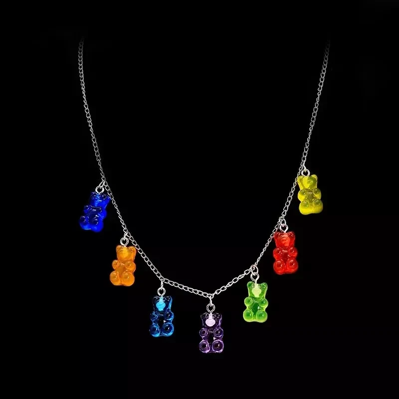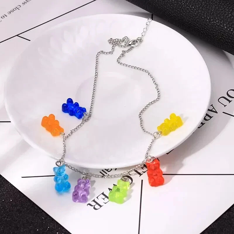 Bear Pendant Resin Gummy Chain 50cm Necklace Charm Jewelry Rainbow Candy Color ღ Product Description Personality candy color bear pendant necklace exquisite resin necklace generous sweet jewelry female Type: Necklace Style: sweet and cute Color: seven-color bear Applicable scenarios: parties, gifts, dating, school, daily life, etc. Material: Resin,alloy Size: Chain Length 50cm Pendant 1.2*2cm quantity: 1 The package includes: 1*Little Bear Pendant Necklace