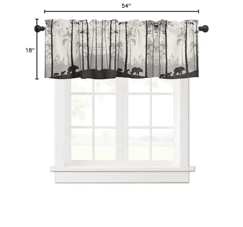Return Policy Fast Delivery Trusted seller Bear Pine Tree Black Sihouettes Window Valance Curtains, Window Treatment for Kitchen, Bathroom, Bedroom, Foggy Brown Beige Forest Rod Pocket Short Curtain 1 Panel, 54x18 in Product Description Premium Materials: 100% high-quality polyester fabric, durable, dust-proof and wrinkle-proof. Provide privacy and protect your family from prying eyes and sun glare. In addition, reduce the damage of strong sunlight to your furniture and floors. To some extent, curtains can also be insulated to save energy and reduce street noise. Size & Header Type: Each package comes with 1 panel of 54 inch width x 18 inch long. The curtain valance rod pocket measures 3 inch, pole bag design can be easily hung on standard curtain rods, convenient for you to install on the window in your house. Extensive Use: Valance can be used as a curtain decorated topper or used alone for other room windows curtain valance, like bathroom window valance, bedroom valance, window kitchen curtain, laundry room curtain valances, used on closet, shelf, narrow window or basement, and it's also perfect gifts for family, friends and other people. Window Valance Decoration: Decorative and elegant window curtain valances let sunlight into the room while protecting privacy, coordinate easily with your home décor, is the perfect choice for home decoration. It will absolutely be a great part of your window, give your room brand new look, nice and good work. Care Instructions: Good quality finishing will withstand years of use. Machine washable and hand washable, hand wash is advisable. Do not bleach. Warm iron and tumble dry at low temperatures. Shipping Returns Payment Shipping Shipping is FREE to all addresses other than APO/PO boxes in the lower 48 states. All our stock ships from US-based warehouses. Shipped via USPS or UPS (depending on location and package weight) Unless stated otherwise, all orders will ship within 24-72 hours of your payment being processed. Check our feedback to see the great reviews of FAST shipping we offer. Returns Seller does not accept returns Payment We currently accept payment via eBay managed payments only. Once payment is cleared, we will dispatch your shipment within 1-3 business days. Please refer to the "Shipping" tab for more information regarding shipping speed to your destination.