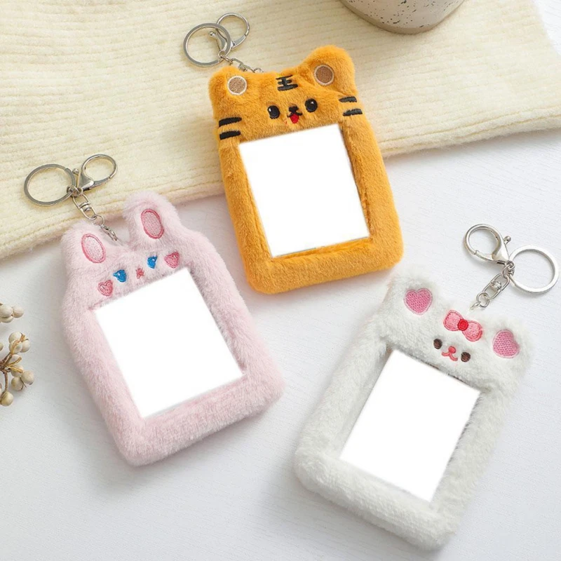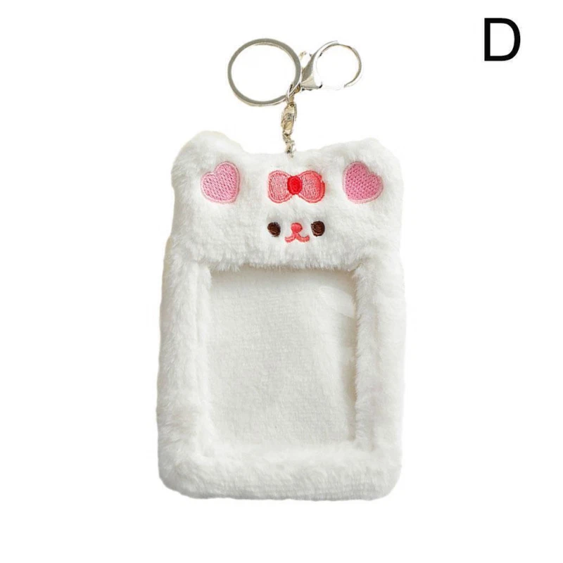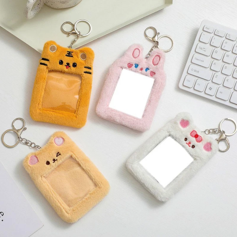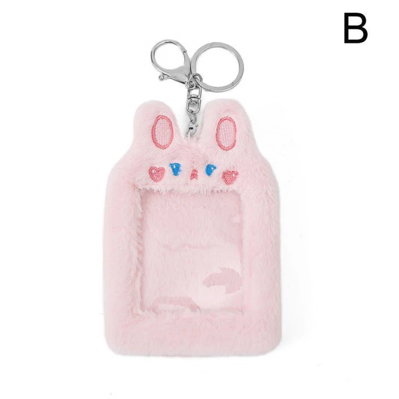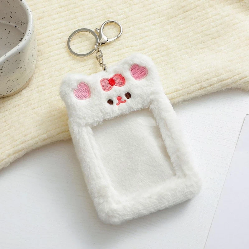 Bear Rabbit Plush Photocard Holder Photo Case ID Card Cover With Keychain*1 R8G1