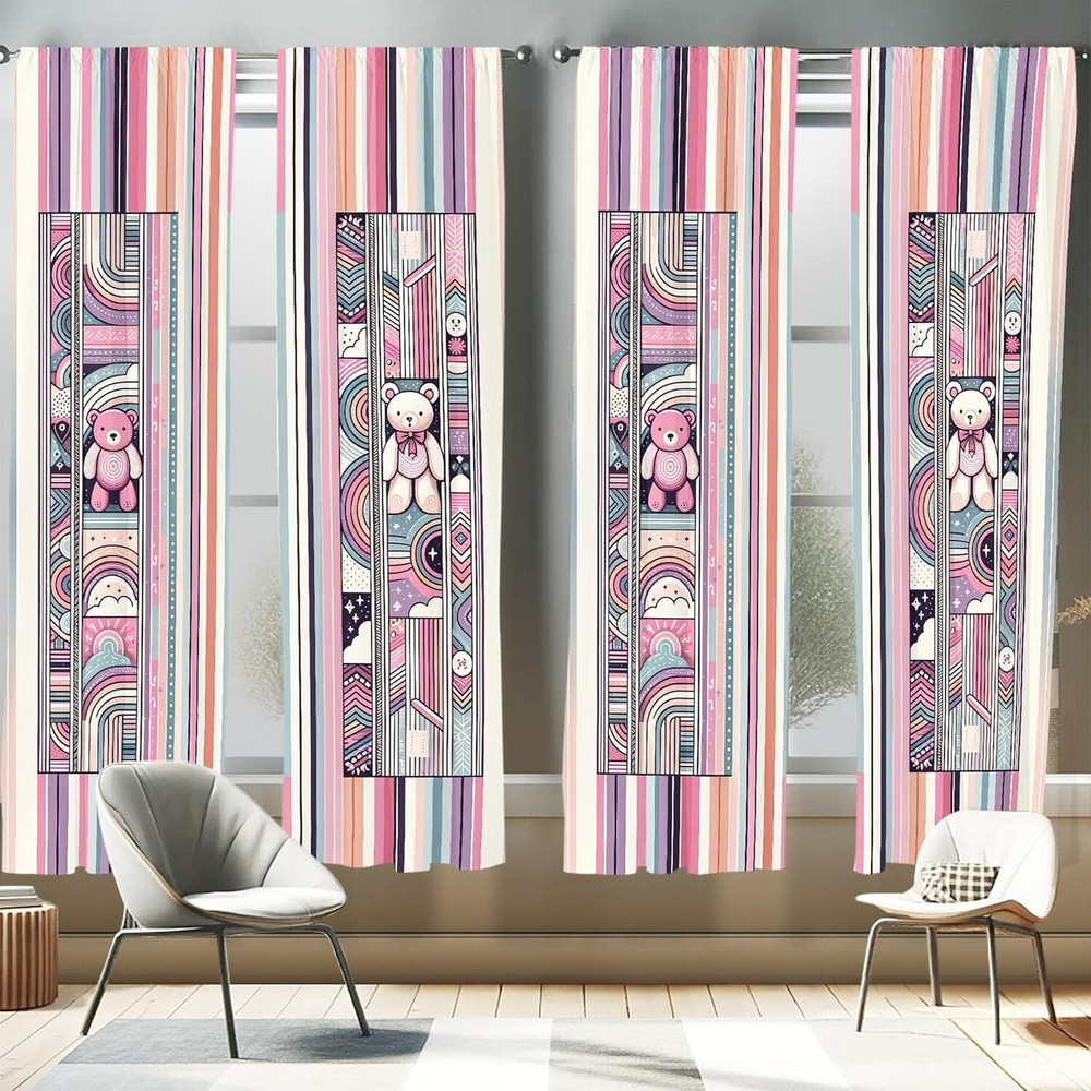 Bear Window Curtains Pack of 2, Delicate Pastel Tone Road Stripes with Modern Cartoon Dream Cloud and Sun, Lightweight Set & Rod Pocket, 4 Panels of - 28" x 84", Blush Blue Grey Ginger 4 Panel Set - Each Panel measures 28" Wide x 84" Long. Lightweight window drapes for bedroom, living room and home decor. MADE FROM - %100 brushed soft microfiber fabric. Lightweight room darkening, modern window coverage. FEATURES - inch rod pocket. For living room, bedroom, dining room & patio door decor. Versatile. MACHINE WASHABLE - On cold delicate cycle, tumble dry on low. Allows your privacy with ease & style. PRINTED - With state of the art digital printing technology. Long lasting bold colors & clear image.