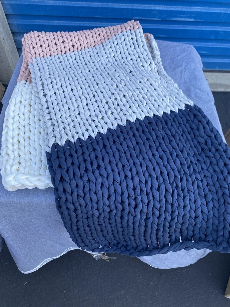 Brand new with tags 8 lb weighted cotton Nappling no longer available in 8 lbs threw bearaby color is confetti a mixture of white, pink, blue and gray Measurements are 40 wide side to side 57 high top to bottom comes with dust bag Track Page Views With Auctiva's Counter