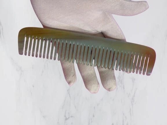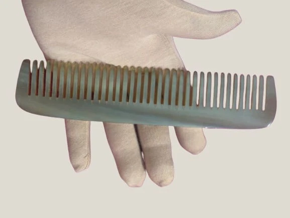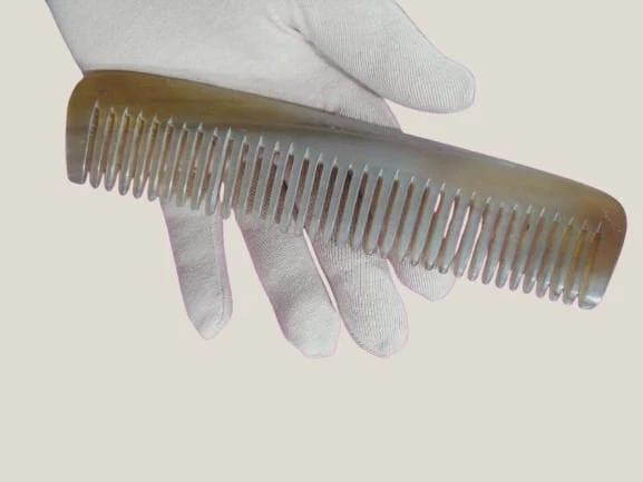 Hair comb handmade from natural buffalo horn. Carefully crafted, polished by craftsmen with high skills. 100% natural material, no chemicals used, safe for skin and eco-friendly. Handmade from high quality horn to relax your feeling, natural material ideal for treated and sensitive hair. Strong and durable for long term use. Country of origin: USA Material: + High quality natural buffalo horn Care instruction: + Store in clean and dry place + Hand washing is recommended, do not soak the comb + Avoid chemical and hot sources. Thanks and best regards! *WAIT A MINUTE: Please read simple methods below to identify a product is made of horn or plastic? - Sinking test: The buffalo horn product is denser than water, so it will sink if put in water. It means if it float, it must not from horn. And if you leave buffalo horn product in water for few days, it will be floppy and damages. - Burning test: Genuine buffalo horn not easy to burn, it turns to ash after burning and smelled like barbecue or burning human hair. Why? Because buffalo horn is keratin, the same as human hair and human nail. Plastic melting when burning it, and you will find a terrible burning plastic smell. - Static test: Plastic produces static by friction, and the genuine horn doesn’t. We can make an experiment by using the horn item and some tiny paper pieces. - Inspecting test: Making a horn item need many handcrafted processes. Not like plastic products are produced by assembly line without humans’ hand, every single horn product is unique, including the shapes, patterns and textures, natural scratches, cracks and even small errors in handcrafted produces. We can watch and compare two of the same product to find out the differences if they are genuine horn item. - Smelling test: Dip some water on a finger and use the finger to rub the horn product surface quickly, then a smell of burned hair or feather will come out. This is because of the similar composition between the horn and hair/feather as above. Fake horn have no such smell. - If you still not sure, you can send it to laboratory test.