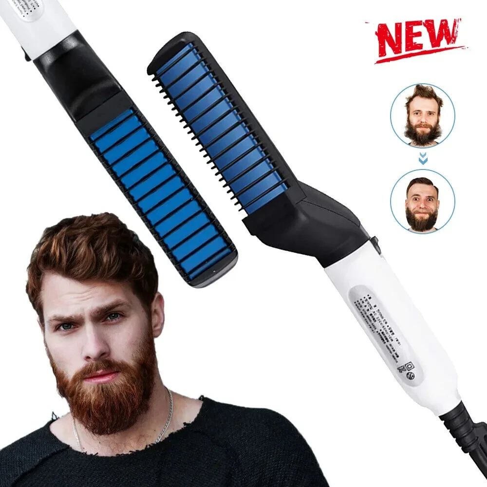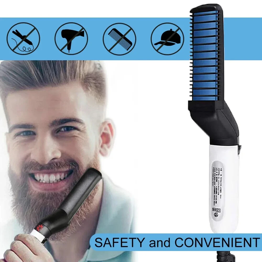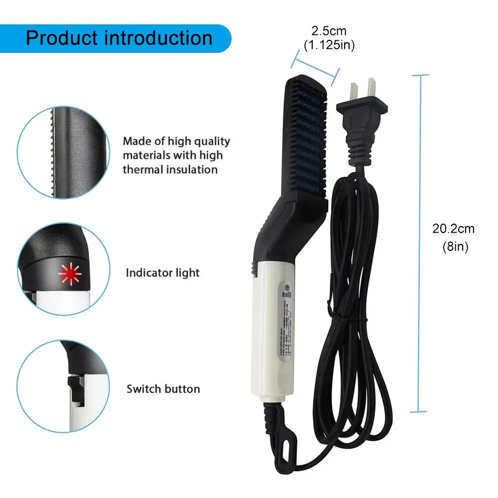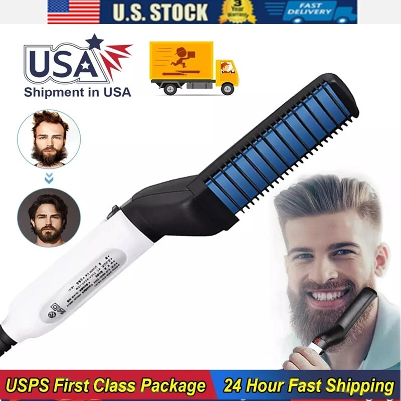 Hair Straightener For Men Multifunctional Curling Electric Brush Beard Comb US 100% brand new and high-quality made. Volumize hair, flatten side hair & straighten curly hair. This multi-functional hair styling brush combines heating barrels and comb teeth for hair smoothing, straightening, curling and creating beautiful volumes, meets your dialy needs for different hair styles. The comb acts as a protective cover against the heating plate to prevent hair from over-burning, comes with innovative 3D anti-scaled encircled protection design. Simply comb to fix your messy hair, straighten curly hair, style your hair in minutes, smooth side hair, reduce hair loss and untie. Preheats within 15 seconds, ceramic coating negative ion barrels and comb teeth protect your hair and seals in moisture for natural shine. Comfortable to grip on. This hair comb can promotes blood circulation when in use, the blood cells will rejuvenate skin and hair cells which reduces dandruff, which also makes your hair look healthier and stronger. Package Includes: 1x Hair Straightener Comb