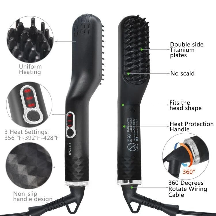 Beard Straightener for Men, Heated Beard Brush w/Anti-Scald Feature,Beard Straightening Comb,Unique Fathers Day Birthday Valentines Gifts for Men Him Dad Boyfriend Christmas Stocking Stuffers SAFE AND EASY MENS BEARD STRAIGHTENER - The best professional hair & beard straightening comb so far,it differs from other products'deficiency such as not hot enough,wouldn't straightening the beard & hair well,the comb bristle easily break off,short lifespan etc,The heated beard comb performs very well for different styles of hair and beard. Not Hot Enough? Wouldn't Straighten the Beard and Hair? - With PTC Heater Technology offers the fastest and stable heat distribution up to 428℉(220°C) in 2 ionic mens beard straightener for men offer 3 heat settings from 356℉ to 428°F which is suitable for most beard or hair types-soft, thin, thick, or curly. The high-quality material and gift box would be top gag gifts for men, fiance, dad, father, coworkers, employees,gifts for men who have everything etc. Can't Straighten Hair and the Comb Bristles Easily Break Off? - Our heated beard comb bristles is extra long,constructed of high-quality glass fiber and no scald coated teeth materials,durable,not easy to break off,the heating elements are spaced much closer together than other products' which makes it more contact w/beard hair & birthday day gifts,anniversary gifts ,christmas day gifts for men husband teenage teen boy. Intelligent Security Protection & Auto Detection - Our beard straightening comb doesn't get as hot as straightening iron,will not burn or damage your hair or finger.Features protective guards around the bristles to avoid scorched or damaged ,it will turn off automatically if not use for 30 mins and when malfunction accurs,it will stop heating to ensure security. US Patented Design & Approved - US Patented Design & Comes with , , , , CA65 tested and approved by and SGS for safety use. A great christmas gifts for men offers a comfortable ergonomic handle and a flexible 360°rotating power cord reduce entanglement during use,slim and lightweight. Add this beard straightener kit to your Cart, you will find this is a brilliant choice you have ever made. We will provide you with this top men gifts set finest products!