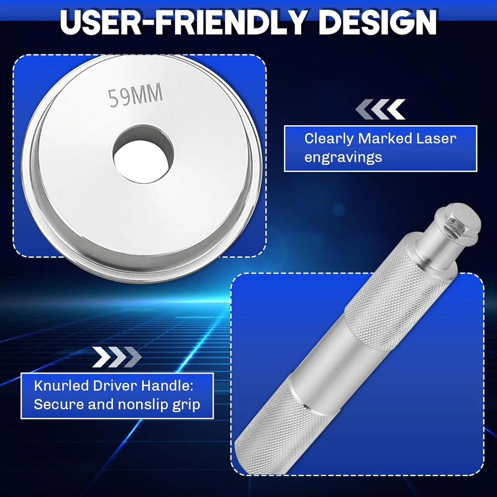 Store New Arrivals Add to Favorite View Feedback Contact Bearing Press Kit | 10Pc Bearing Race and Seal Driver Set with a Driver Handle and 9 Discs Collar Axle Housing, Universal Tool for Bearing Races and Seals in Automotive Wheel Hubs Description Item model number MSP-1129-01 Color Silver Country of Origin China Manufacturer Part Number MSP-1129-01 Item Weight 2.94 pounds Model bearing press kit Package Dimensions 9.61 x 6.61 x 3.62 inches 【Effortless Installation】 weyleity's 10-piece bearing press kit simplifies the installation of bearing races and seals, ensuring a quick and easy process without any damage to the axle housing. 【Durable Construction】 Crafted from heavy-duty aluminum alloy with a corrosion-resistant coating, our seal installer set is built to last. Experience exceptional strength and endurance, even under demanding usage. 【User-Friendly Design】 The knurled driver handle provides a secure, nonslip grip for precise control. Laser engravings on each driver collar are clearly marked, allowing you to swiftly identify and select the right size. 【Wide Application】 Our bearing race and seal driver set boasts 9 bearing adapters covering a range of sizes, making it suitable for various vehicles. It's a comprehensive solution for your mechanic needs. 【Compact and Portable】 With a convenient storage case, this bearing and seal driver set is easily portable. Keep everything organized and ready to go, making it the perfect companion for your working needs. Product Description Details and Features Premium Quality Forged from high-strength aluminum, our set ensures extra durability, a long service life, and won't mark the bearings. Easy to Use Simply select the correct bushing, align, and pound in/out. This universal aluminum bush drive seal kit makes race seal installation a breeze. Broad Compatibility With discs collar axle housing of 9 different sizes, it fits standard raceways used in most wheel bearing applications. Laser Seal Engraving Laser seal engraving has excellent durability and can resist the erosion of harsh environments such as oil stains, water stains, and chemicals. More weyleity Bearing Pullers Tools Add to Cart Add to Cart Add to Cart Add to Cart Add to Cart Add to Cart Customer Reviews 4.6 out of 5 stars 12 4.8 out of 5 stars 14 4.8 out of 5 stars 7 3.9 out of 5 stars 13 4.2 out of 5 stars 4 — Price $21.59 $ 21 . 59 $13.99 $ 13 . 99 $18.99 $ 18 . 99 $31.99 $ 31 . 99 $42.99 $ 42 . 99 $41.99 $ 41 . 99 Brand weyleity weyleity weyleity weyleity weyleity weyleity Pieces 10PCS 17PCS 3PCS 14PCS 16PCS 52PCS Material Aluminum Alloy Aluminum Cast Steel Chrome-Plated Steel Chrome Molybdenum Steel Carbon Steel Application Automotive Wheel Hubs Motorbikes Wheel Bearings 5/8-18 UNF Slide Hammers Automotive Repair Bearing Removal Remove Wheel Bearings Wtih Storage Case ✔ ✔ ✔ ✔ ✔ ✔ ABOUT US We offer the best prices around on high quality products. Our E-store includes media such as books, movies, music and games while offering electronics, toys, sporting apparel, clothing, tools, general home, garden items and more. SHIPPING We are always working hard to ensure your package arrives as soon as possible. Please understand that some factors like weather, high postal traffic, and the performance of shipping companies are outside of our control. We offer free shipping to the lower 48 states and ship within 2 business days of payment, usually sooner. We do not accept P.O. Boxes. Please provide a physical address. For shipping outside of the continental USA, we only use eBay's Global Shipping Program.The item is shipped to KY and then sent to the rest of the world. International customers are responsible for all duties and taxes. Continue to check out in order to calculate costs for shipping the item to your country. Messages regarding eBay's Global Shipping Program MUST be directed at eBay EXCLUSIVELY. RETURNS We offer a 30-Day Return Policy on items which you are not completely satisfied with. You have the option for a full-refund or an exchange of the item. No returns are available on items shipped outside of the USA. PAYMENT We accept PayPal. CONTACT US This page content is yet to come Please ad us to your favorite seller and visit again later Thank You CUSTOMER SATISFACTION We try our very best to make sure every customer is completely satisfied. If there's a problem, message us! We're happy to help. WE ACCEPT Copyright © 2021 AutoDS. | All Rights Reserved
