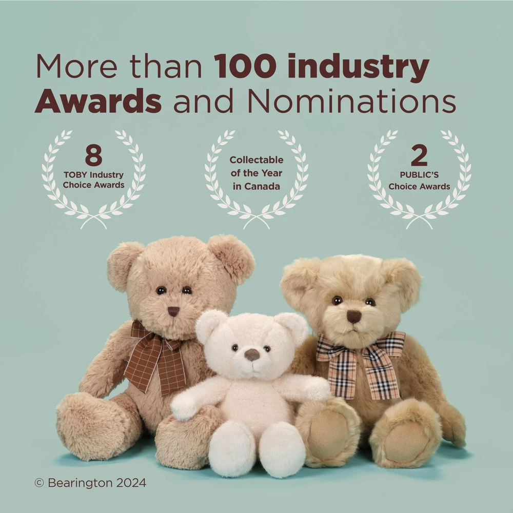 This adorable Baby Huggles bear has the design of a classic bear with the softness of modern plush. Measuring 10" tall from head to toe, Huggles is the perfect size for cuddling and is sure to become a treasured companion. Hand crafted using the most luxuriously soft plush, this bear is perfect for everyone from the collector to a special child in your life. Baby Huggles teddy bear is from the award winning . Founded in 1997 Bearington is the proud recipient of more distinguished design awards than any other teddy bear company. Over the years Bearington has received more than 100 industry design awards and nominations which include: 1 Canadian Collectible of the Year Award 2 NALED Plush of the Year Nominations 2 CIB Collector’s Choice Awards and several TOBY Industry Choice Awards TOBY Public Choice Awards and Golden Teddy Awards and Nominations. MEET LIL’ HUGGLES: Discover the enchanting Bearington Huggles, a small teddy bear standing at 10 inches tall, boasting a creamy white hue and hand-sewn precision. This stuffed animal exudes a timeless charm, perfect for cuddling and gifting. Immerse yourself in the world of stuffed animals and baby teddy bears with this delightful addition, sure to captivate all ages. READY FOR SNUGGLES: This cute teddy bear promises an unmatched cuddle experience with its ultra-soft fur, inviting you into a world of cozy hugs. It's the perfect "my first teddy bear" for little ones, boasting a luxurious feel that's simply irresistible. The elegant satin bow accentuates its charm, adding a touch of sophistication to this plush teddy bear. PLUSH COMFORT: This is the perfect plush teddy bear for babies and newborns. Crafted with care, this soft teddy bear is generously stuffed with premium fill, providing a plush and huggable companion for your little one. Its soft and squishy texture makes it ideal for snuggling, ensuring a comforting cuddle every time. Give your baby the gift of love and companionship with Huggles, the ultimate baby teddy bear for newborns. A SPECIAL GIFT: Celebrate special occasions with this heartwarming fluffy teddy bear. This personalized teddy bear for girls and boys exudes love and comfort, making it a perfect present for birthdays, anniversaries, or Valentine's Day. Its timeless charm adds a touch of warmth and joy to every celebration, conveying affection in the most delightful way. AWARD-WINNING TOYS: Bearington, the renowned toy manufacturer, has crafted exceptional stuffed animals and plush toys for 25+ years. From beloved teddy bears to lifelike dog plushies, our award-winning collections cater to babies, kids, and adults alike. Immerse yourself in our diverse range, featuring realistic stuffed animal dogs, captivating wildlife, and much more. Experience the joy of cuddling with Bearington's extraordinary creations.