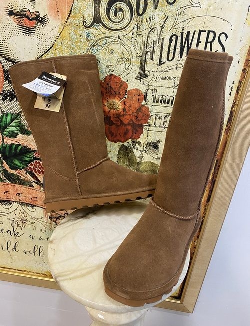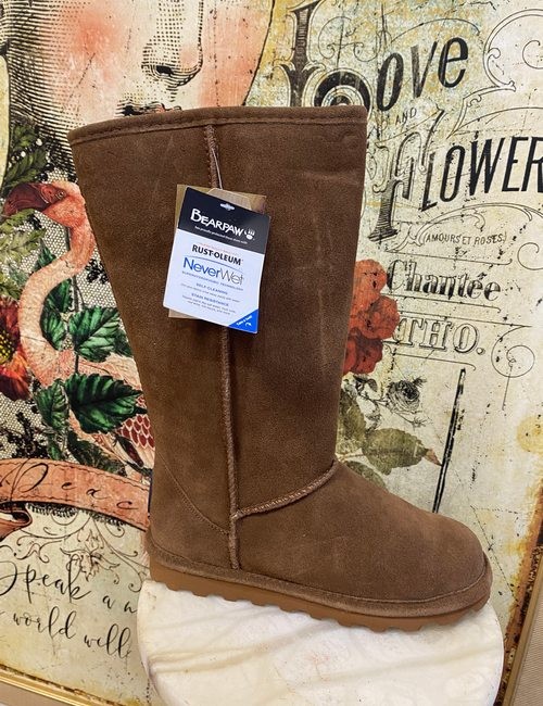 Bearpaw Chestnut Suede Sheepskin Elle Tall NeverWet Winter Boot 5 New Description BEARPAW Boots This classic suede boot features a slimmed-down construction with the comfortable fit BEARPAW is known for. Treated with NeverWet technology, it offers superlative protection from the elements. So while your feet are staying warm inside the sheepskin and wool-blend interior, you can feel confident whether tromping through freshly fallen snow or a navigating some unexpected drizzle. The features are: Brand new; In a plain box Upper: Suede Design: Pull-on tall boot Toe Type: Round, closed Lining: Wool-blend upper Footbed: Sheepskin Insole: Padded Sole: Slim tread blown rubber Additional Features: Rust-Oleum NeverWet water-repelling treatment Whole Sizes Only If your normal shoe size is a half size, please order one half size larger for an optimal fit. Back Heel Height: Approx. 1"H molded flat sole unit Shaft: Approx. 12"H shaft with a 15" leg opening Be sure to check out my Ebay Store. Enjoy! Payment, Shipping & Return Information U.S. Buyers to pay shipping and handling of 9.95 for 1st item. For each additional item add 6.95 . For shipping discount to apply, all items need to paid in one combined payment. Missouri Residents to pay Sales Tax Items may returned in original condition for a refund of the purchase price. Shipping costs will not be refunded, unless an error was made by us. International Shipping rates: Canada via 1st class international: 29.95 Worldwide via 1st class international: 39.95 For Multiple item shipping discounts, Priority Mail or Express Mail International please contact me for a shipping Quote International Buyers - Please note: Import duties, taxes and charges are not included in the item price or shipping charges. These charges are the buyer's responsibility. Please check with your country's customs office to determine what these additional costs will be prior to bidding/buying. Due to the USPS raising international shipping costs, I may have to package without the shoeboxes for some International Shipments. We accept Paypal. Thanks for Looking.