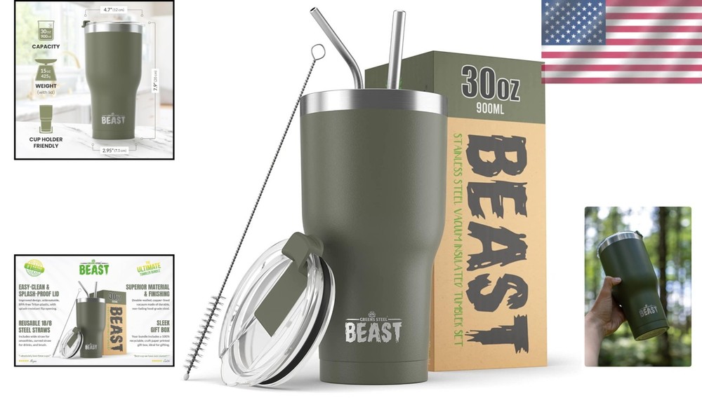Beast 30 oz Insulated Stainless Steel Cup - Stylish Army Green Travel Companion ‹ › ‹ › ‹ › ‹ › ‹ › ‹ › ‹ › ‹ › ‹ › ‹ › Beast 30 oz Insulated Stainless Steel Cup Stylish Army Green Travel Companion Exclusive Bonus Bundle: Two unbreakable straws: 1 curved for water & 1 wider & straight, perfect for shakes & smoothies. A straw brush for effortless cleaning. An upgraded pop-up lid for easy access and maintenance. All presented in an elegant gift box, making it a perfect present for loved ones! #1 Insulation & Temperature Retention: Over-engineered and extensively tested against leading brands, our tumbler promises unmatched performance. With a splash-proof, closable lid, it maintains your drink's temperature and prevents spills, ensuring an enjoyable sip every time! #1 Quality: Unlike competitors who cut corners with lower-quality materials, we use only the finest 304 18/8 Food Grade Stainless Steel. Enjoy a durable and elegant travel companion that won’t disappoint. #1 Superior Finishing Inside & Out: Sweat-free design for a smooth touch that looks as good as new. Long-lasting powder coating ensures no rust or scratches. Electro-polished interior guarantees no unwanted flavors, providing you with an exceptionally clean drinking experience. Top Quality & 100% Satisfaction: The era of cheap plastic and low-quality tumblers is over! We believe you deserve the best, and every Beast Insulated Tumbler reflects our commitment to superb quality and customer satisfaction. Each purchase is backed by our satisfaction guarantee – order now and discover the difference! Don't settle for ordinary. Elevate your hydration game with our Beast Insulated Tumbler! Shipping Free & Fast Shipping - We offer free shipping to most of the USA with a normal delivery time of 3-7 days. However, due to the current situation, additional delivery time (up to 3 weeks) may be required for some items. Alternative Carriers - We may use alternative carriers (e.g. USPS, FedEx, UPS, etc.) to ensure your package arrives safely and on time. Due to the use of multiple carriers, we are unable to provide a tracking number automatically. Handling Time - Orders are processed and shipped within 1-2 business days of receiving cleared payment. Shipping Restrictions - Shipping to Alaska, Hawaii, Puerto Rico, Guam, and other US territories may incur shipping charges or delivery restrictions. Please contact us before ordering, or your order can be refunded/cancelled. State Restrictions - There may be restrictions based on your state of purchase. For example, certain items may not be shipped to California due to state regulations. Contact for Tracking Updates - If you require tracking updates or have any concerns about the delivery of your order, please feel free to contact us, and we will be happy to assist you. Return 30-Day Hassle-Free Returns - We want you to be completely satisfied with your purchase. If you are not, you can return the item within 30 days of receiving it for a full refund or exchange. Easy Return Process - To start a return, simply contact us and we will provide you with a prepaid return shipping label and detailed instructions. Restocking Fee - There are no restocking fees for returns. However, the buyer is responsible for return shipping costs if the return is not due to a seller's error. Refund Processing Time - Refunds will be processed within 5 business days of receiving the returned item in its condition. Payment We accept all major credit cards, PayPal, and Apple Pay for your convenience. Your payment information is secure and encrypted to ensure a safe and seamless transaction. Please complete your payment within 3 days of purchase to avoid any delays in shipping. Feedback Your feedback is extremely important to us. We strive to provide the best products and customer service possible. If you are satisfied with your purchase, please take a moment to leave us a positive review. If you have any concerns or issues with your order, please contact us before leaving negative feedback. We are committed to resolving any problems and ensuring your satisfaction. Contact Us If you have any questions or concerns, please feel free to out to our customer support team. You can contact us through the eBay messaging system. We are available Monday to Friday, 9:00 am to 5:00 pm EST, and we will do our best to respond to your inquiry within 24 hours. Buy it now and enjoy a pleasant shopping experience! Unit Quantity: 1 Material: Stainless Steel Features: Insulated,Reusable Theme: Vehicle Department: Adults Type: Insulated Tumbler Color: Army Green Beverage Type: Cold Pattern: Solid Capacity: 30 fl oz Number of Items in Set: One-Piece Lid Type: Pop Up Keeps Cold For: All day Keeps Hot For: Not specified Item Height: 4.29 Inches Item Weight: 1.2 lb Unit Type: oz Care Instructions: Machine Washable