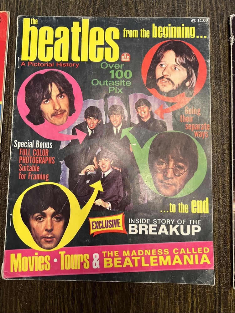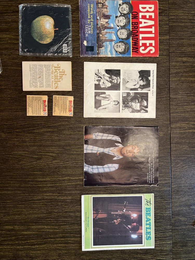 Vintage Beatles Collectibles Lot – Magazines, Picture Disc, Cards, Book & More This is a one-of-a-kind Beatles bundle perfect for collectors, fans, or anyone looking to own a piece of music history. All items are original vintage pieces—no reprints, fakes, or modern replicas. Included in this lot: 🎵 1988 Picture Disc – “Hey Jude” / “Revolution” (EMI RP5777) • Double-sided with full-color and black & white images of The Beatles • Original Apple Records sleeve with halved apple & whole apple art • Produced by George Martin | Excellent condition 📚 “The Beatles: The REAL Story” Paperback • Behind-the-scenes look at the Beatles phenomenon • Vintage bio-style book with fan-focused content • Light cover wear, great for display or reading 🃏 Miniature Album Collection Gum Cards (B-15 & B-16 of 16) • Still sealed in original packaging • Features “Let It Be” and others • Issued by Album Graphics Inc., U.S.A. – hard to find unopened! 📰 Vintage Beatles Magazine Inserts / Posters: • “Going Their Separate Ways” photo collage (all 4 Beatles) • Full-page Paul McCartney with quote: “Paul is the greatest bass player…” • 1965 “On Stage” souvenir pictures booklet – issued by Beatles (USA) Ltd. • All in great shape for their age – perfect for framing or display 🍏 Bonus: Apple Records Logo Insert Sleeve • Iconic green and halved apple designs • Originally housed the picture disc – excellent standalone collectible ⸻ Condition: All items are in very good vintage condition with normal age-related wear. Picture disc is clean and glossy. Cards are unopened. Magazines and book have mild edge wear but no major damage. 📦 Ships securely with tracking and protection for all items. 🎁 Great gift for Beatles fans, vinyl collectors, or music history lovers!