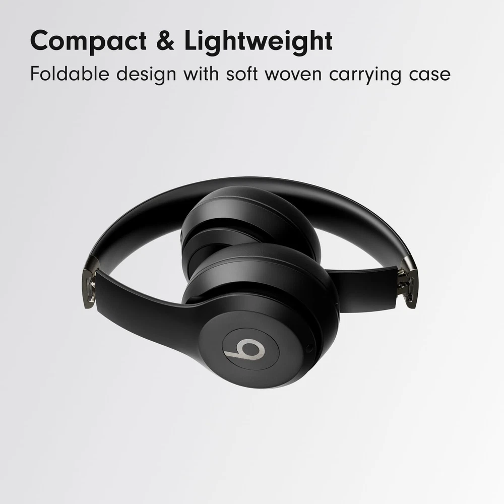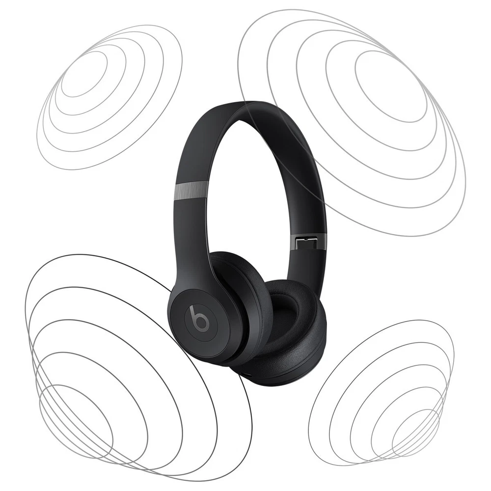 Experience high-quality sound with these Beats Solo 4 Bluetooth Wireless On-Ear Headphones. The headphones are designed with a comfortable headband and ear-cups that provide a secure fit for an immersive audio experience. With Bluetooth connectivity, you can easily connect to your device and enjoy wireless freedom. These headphones come in sleek black color and have a double earpiece for added convenience. The Beats by Dr. Dre brand is known for its premium sound quality, and these headphones are no exception. Enjoy your music with active noise cancellation and stereo sound. More about the item Custom acoustic architecture and updated drivers for powerful Beats sound. Personalized Spatial Audio with dynamic head tracking. Ultralight ergonomic design for all-day comfort. Flex-grip headband and ergonomically angled, adjustable ear cups for a stable fit. UltraPlush ear cushions are designed for comfort and durability. Up to 50 hours of battery life. Fast Fuel means a quick 10-minute charge gives up to 5 hours of playback. High-resolution lossless audio via USB-C or 3.5 mm audio cable. Dual compatibility including one-touch pairing for both iOS and Android. High-quality call performance and voice assistant interaction via built-in microphone. Industry-leading Class 1 Bluetooth for extended range and fewer dropouts.