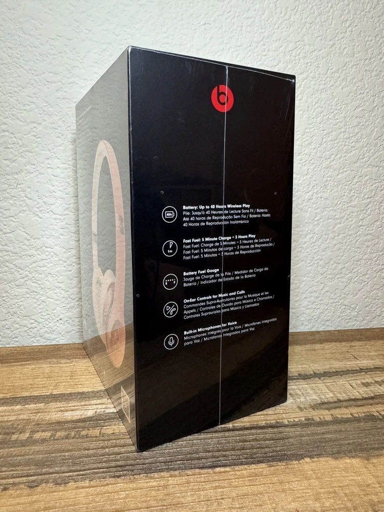 Brand new, factory sealed. What’s in the box: • Beats Solo3 wireless headphones • Carrying case • Universal USB charging cable (USB-A to USB Micro-B) • Quick start guide Comes from a smoke free home. Ships the same day or the next business day!