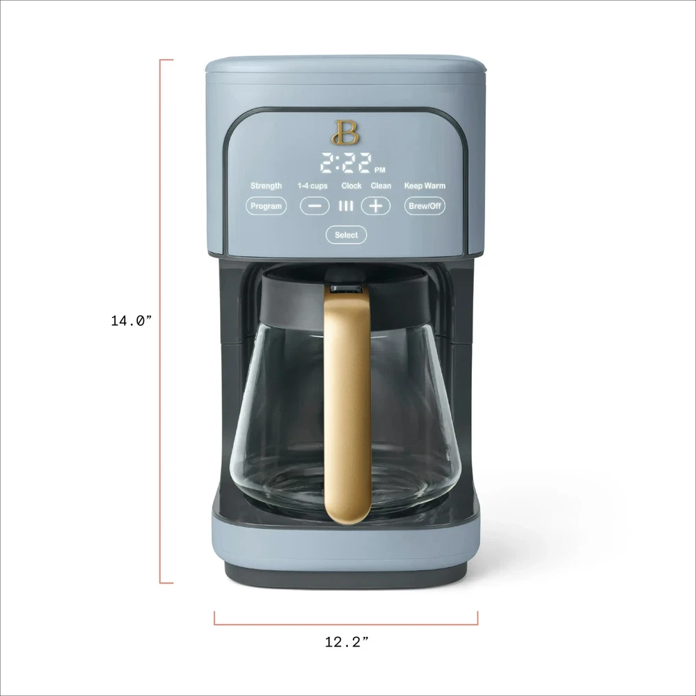 Product details Start your day with the stylish Beautiful 12-Cup Programmable Coffee Maker by Drew Barrymore. Featuring an elegant design, it boasts smart features for brewing rich coffee. Select from Regular, Gourmet, or Bold strength settings. Brew a full pot or a few cups with 24-hour programming, complete with an auto shut-off and warming plate for convenience. Brews up to 12 (5oz) cups 1–4 Cup mode delivers bold flavor in smaller servings Choose from Regular, Gourmet, or Bold strength Fully programmable to brew your carafe up to 24hrs in advance Pause and serve lets you pour mid-brew Auto-clean reminder ensures optimal performance and flavor Keep Warm mode maintains temperature for up to 4hrs Nonstick warming plate is stain-resistant and easy to clean Large water tank holds up to 60oz Glass carafe, lid, reusable filter, and scoop are dishwasher safe Powerful 1200-watt brewing system Touch-activated display lights up when needed Includes reusable gold-tone filter and measuring scoop