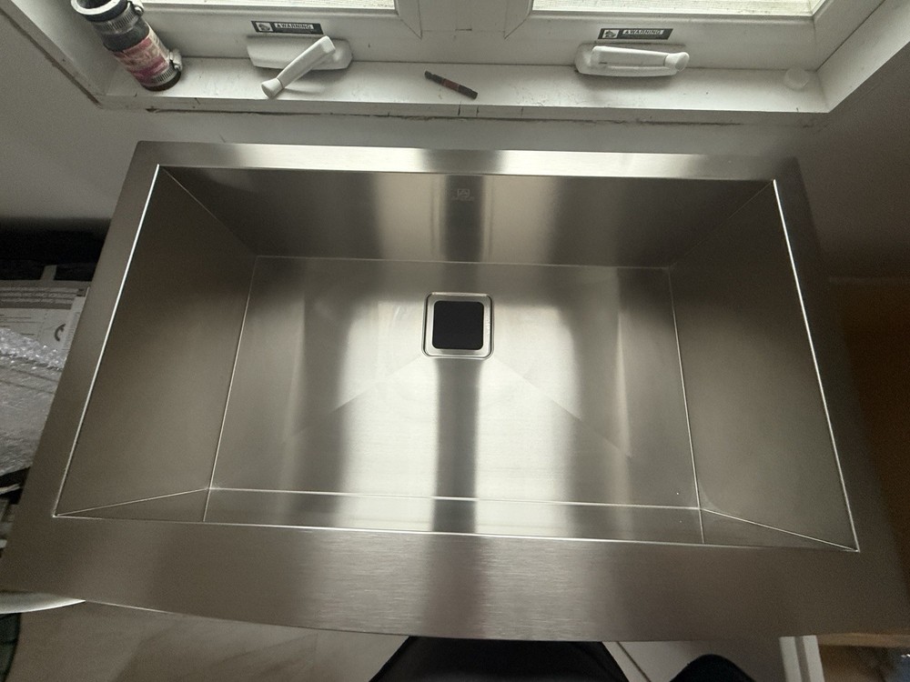 Elevate your kitchen's aesthetic with the Anzzi Stainless Farmhouse Sink, a perfect blend of functionality and style. Crafted from high-quality stainless steel, this sink offers durability and a sleek, modern look that complements any Art Deco-inspired kitchen decor. With its generous dimensions, it provides ample space for washing dishes and cooking, making it a practical addition to your home. This Anzzi farmhouse style sink is designed to deliver exceptional performance and resilience, with a unit quantity of one to ensure you receive a seamless and dedicated kitchen upgrade. Its sturdy construction and elegant design, featuring a polished stainless steel finish, will undoubtedly enhance the appeal and efficiency of your kitchen. INCLUDES: 33”x 20” Sink, Gratework for bottom of the sink, square drain, hardware, and instructions. Originally $399.00 Paid 3/5/2025 $275.00 Asking $200 obo + shipping.