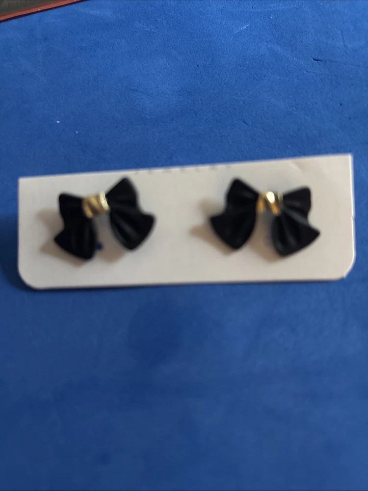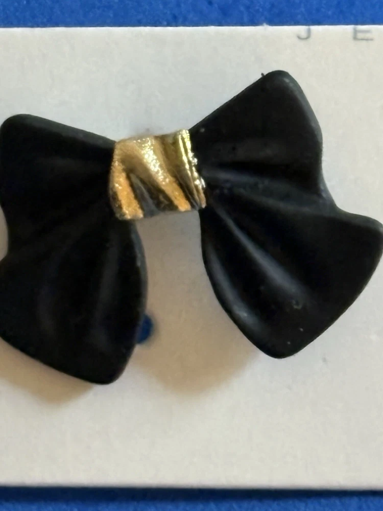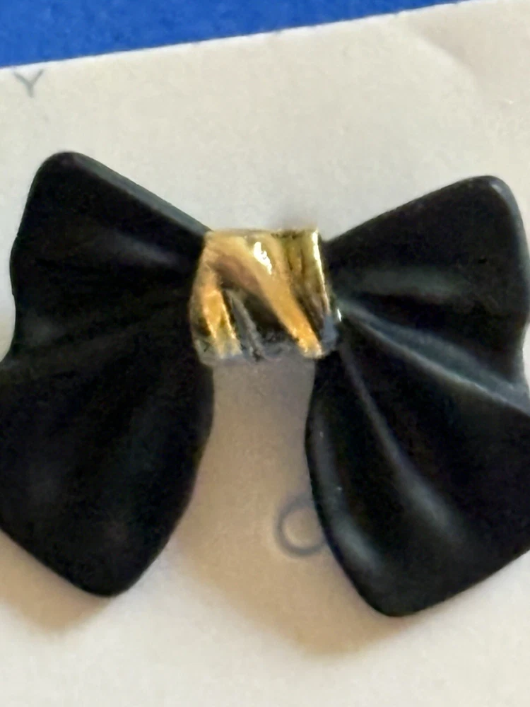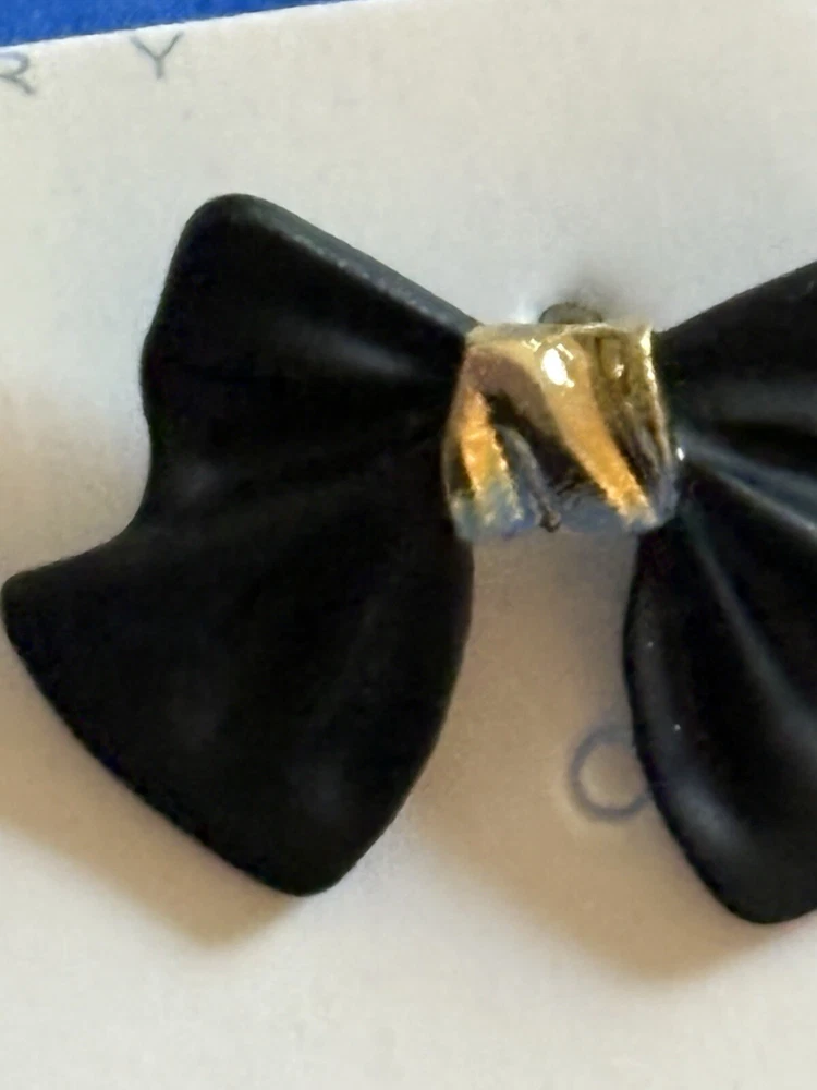 Add a touch of elegance to your outfit with these beautiful black hard bow earrings. The gold tone studs add a subtle sparkle that will complement any outfit. The secure lock back closure ensures that they stay in place all day. These earrings are perfect for any female who wants to add a touch of beauty to their look. The round shape of the bow and the yellow gold plated metal give them a classic and timeless appeal. The earrings are 0.59 inches in length and have no stone treatment. They are a great addition to any jewelry collection and are sure to impress.