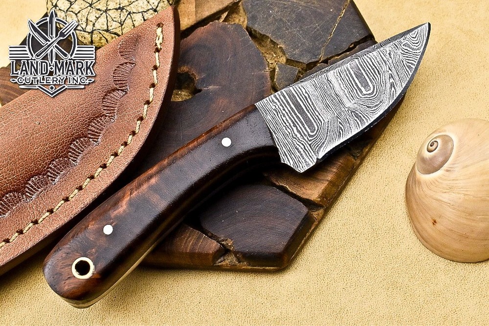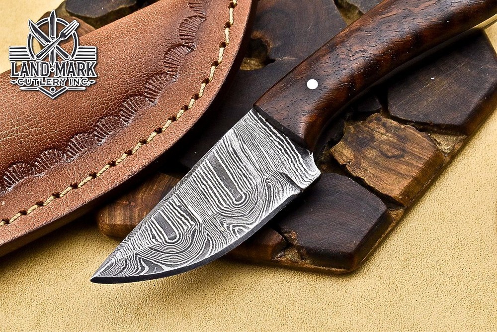 Custom Hand Made DAMASCUS STEEL HUNTING KNIFE WITH ROSE WOOD HANDLE We offer a shipping discount for More then one purchased . And discount will be apply on combine invoice, Discount will not apply on separate payment. ITEM DETAILS OVER ALL LENGTH 3.0 inches long (Approx) HANDLE LENGTH 1.5 inches long (Approx) BLADE LENGTH 1.5 inches long (Approx) BLADE HARDNESS 58-60 HRC Which Holds HANDLE MATERIAL ROSE WOOD COVER LEATHER SHEATH This Awesome custom made KNIFE has a nice hand forged with the combination of 4340 & 1080 steel. HOW OUR DAMASCUS IS MADE: All our Damascus is real and not just an acid etch. Damascus is a mixture of 1080HC and 4340 nickel carbon. You heat them up together and then fold the bar over and over to get the desired layers, ours are 396 layers. Then you burn the blade in acid, and it turns the nickel satin color and the high carbon turns blackish gray. This is how the layers are exposed to show the layers of the new steel created coined "Damascus". All Damascus is acid etched to show the layers. If you high polish the metal it will be shinny satin like all steels. Only after you burn the sides of the blade with acid do you see the layers of the two steels. Makes sense? After we make our knives we high polish the handles and put an edge on the blade. The high polishing buffs off the acid burned layer of the handle, and the blade edge is sharpened and the acid burned edge becomes satin. You can re-burn the tang of the blade near the handles and the edge of the blade and it will show the layers once more. All our knives are hand made, durable and unique ***** YOU WILL RECEIVED THE SAME KNIFE Qality Standards Our Damascus blades are made from high quality non-stainless steels which rival or exceed any Damascus blade made from the 10 series with 4340. Our Damascus combination has taken years to perfect and has been tested under a variety of application which will offer professional performance in categories of toughness, strength (lateral stress) and edge honing and holding ability. In a 5 spot Rockwell test our blades will average near or close to 58 which offers a perfect balances between its toughness and strength.Our blades due to carbon content need to be regularly treated with wax and/or 3 in 1 oil to maintain its superior quality. Questions if you have any question feel free to send us message we aim to answer all questions within 24 hours Feedback If you are not satisfied with our service please contact us before leaving any negative or natural feedback. We will resolve all issues as quickly as possible. Disclaimer We are not responsible for any injuries associated with the use of our tools. Our products are intended for legal use only by responsible buyers. Therefore, we will not sell our products to anyone under the age of 18. Before bidding please check your country laws as some countries Custom don't allow this. If your purchase is held by Custom Authorities in your country/State we will not be responsible for that and no refund will be issued Shipping We offer a 20% shipping discount for More then one purchased . And discount will be apply on combine invoice, Discount will not apply on separate payment We ship within 24 hours after receiving complete payment but this can be delayed due to week ends or Governments and Religious Festivals . . This is beyond our control and we apologize for this inconvenience. Precautions Our Tools are very sharp so open and use them very carefully We are not responsible for any injuries associated with the use of our tools Tips to Care knife 1. NEVER STORE YOUR KNIFE FOR LONG TIME IN LEATHER SHEATH. 2. LEATHER CAN ABSORB WATER, WHICH WILL RUST THE KNIFE. 3. ALWAYS CLEAN THE BLADE AFTER USING WITH OIL OR WAX