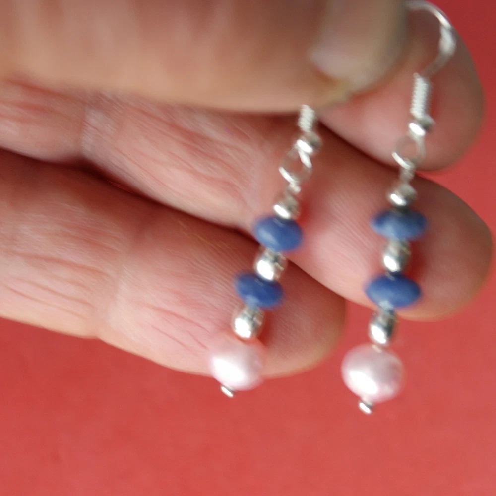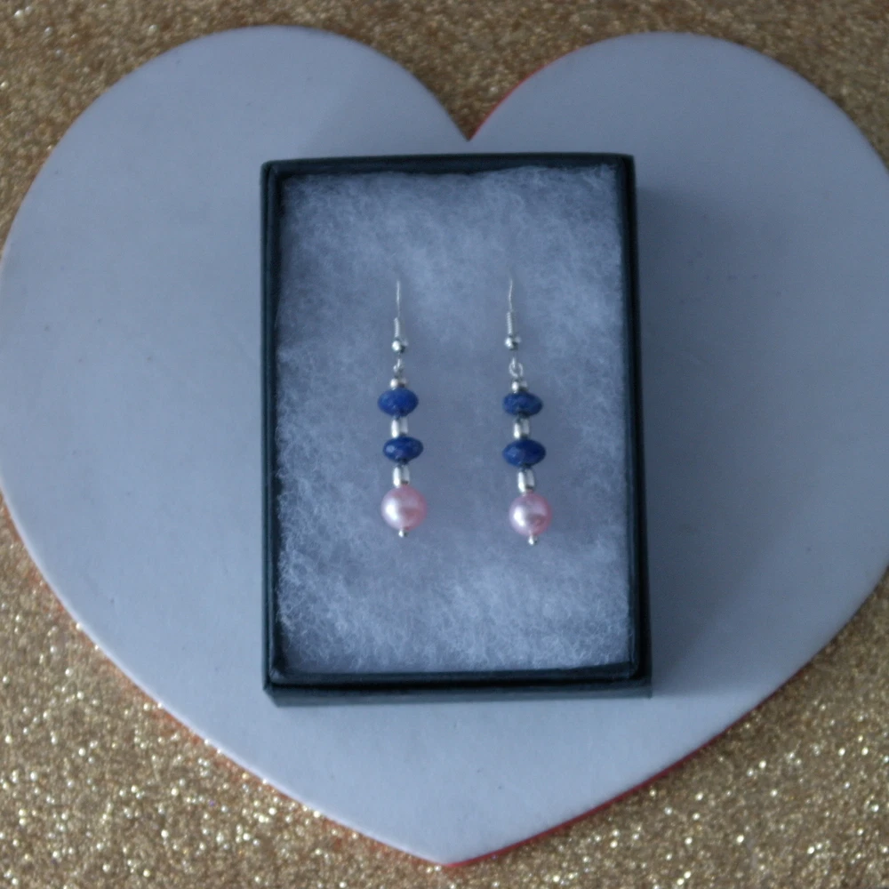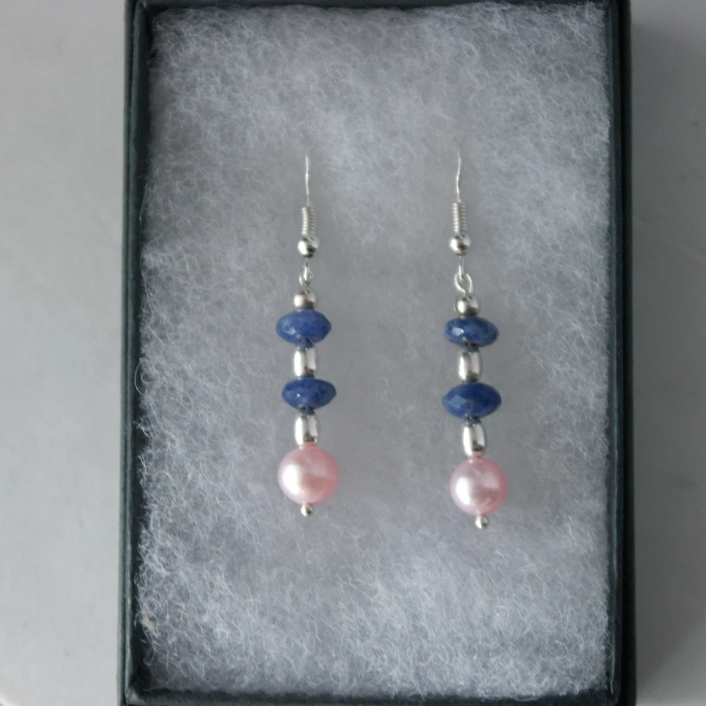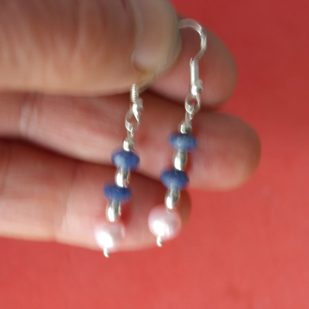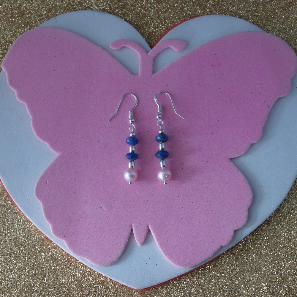 HomeBeautiful Earrings With Lapis And Pink Pearls 2.3 Gr.3 Cm.Long + Silver Hooks