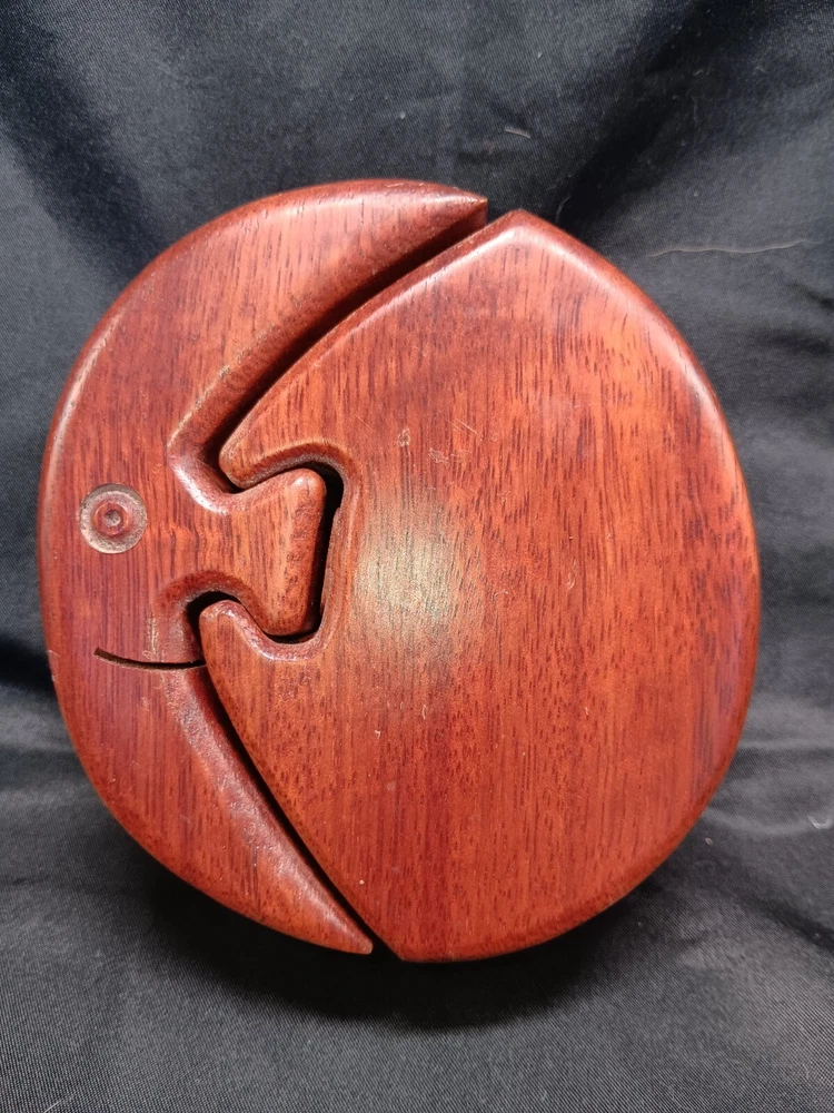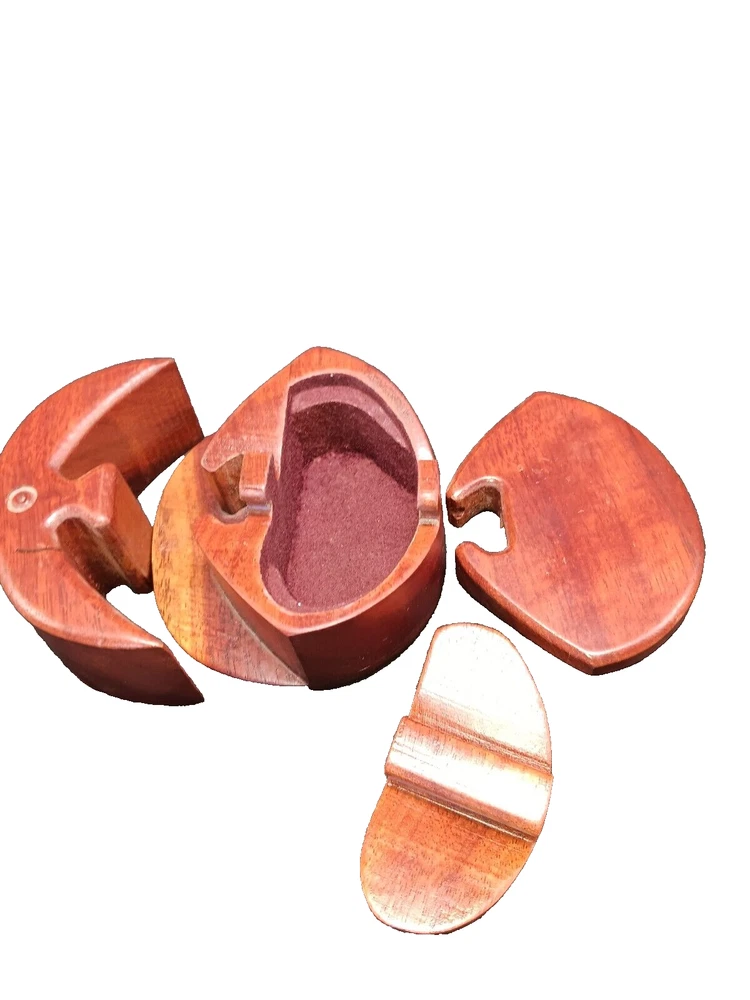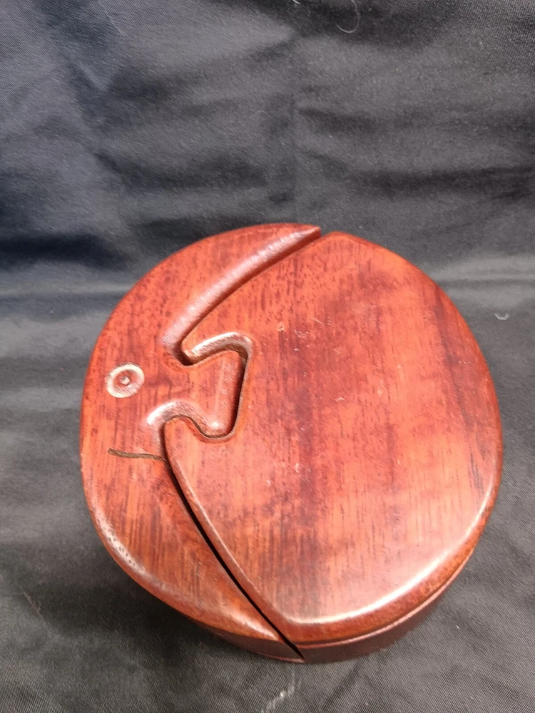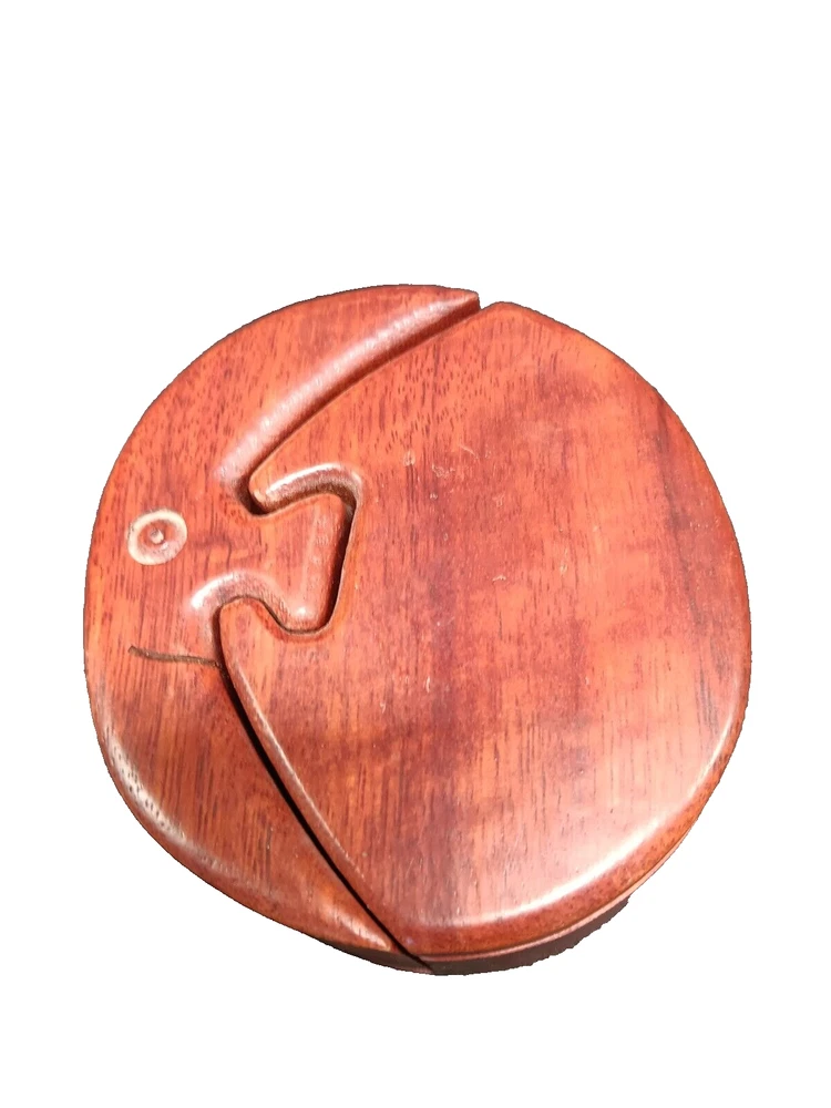 Brand:HandcraftedItem Width:Less Than 10 inTheme:PuzzleRoom:Any RoomOriginal/Reproduction:OriginalShape:RoundAdditional Parts Required:NoUPC:Does Not ApplyOccasion:All OccasionsPattern:Solid WoodHandmade:YesSize:SmallEngraved:NoCustomized:NoCollection:NADepartment:Girls, Boys, TeensMaterial:WoodCountry/Region of Manufacture:UnknownPackaging:Boxgtin13:Does Not ApplyModel:Puzzle TrinketType:Trinket BoxSubject:MoonColor:BrownCharacter:NAFeatures:PuzzleItem Height:About 2”Number in Pack:1Closure Type:PuzzleSeller Notes:“Excellent”Style:Vintage Retro