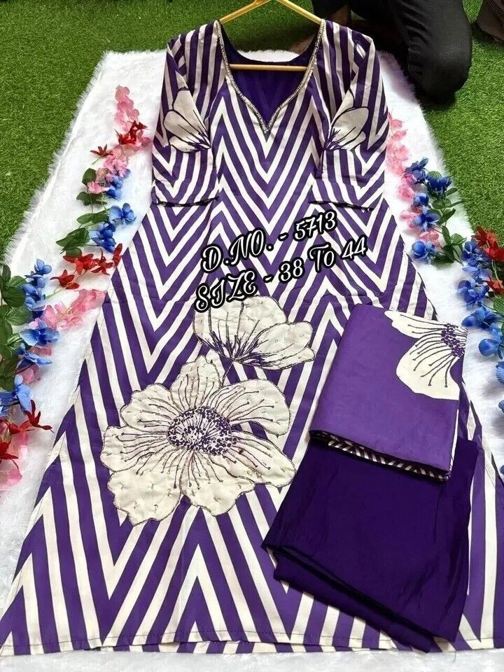 PRODUCT DESCRIPTION "Product Details Beautiful Heavy Muslin Silk Fabric, Long Kurti ( Length - 44”) With Full Lining (inner - Back & Front) + Heavy Hand Adda Beads & Sequins Work On Yoke & Flower Prints + Heavy Silk Fabric Pant + Heavy Muslin Fabric Dupatta With Digital Print Work 👗 ⭐ D.NO. - 5713 😍 4 Colours Available 🥰 ⭐Size: M/38, L/40, XL/42, XXL/44 🤩 Price /- FreeShip (38 To 44 Size) 🤩 ⭐ Same Day Dispatch ✈✈✈ ⭐Size: M/38, L/40, XL/42, XXL/44, 3xl/46, 4xl/48, 5xl/50, 6xl/52, 7xl/54 🤩 Price : - FreeShip (38 To 44 Size) 🤩 🤩 Price : /- FreeShip (46 To 54 Size) 🤩 ⭐ Same Day Dispatch ✈✈✈ Enticingly elegant Kurta Pant set will certainly be a perfect paradigm for a classic look. This set is best reflection to your sophistication. A perfect match to twin on any day. Specially designed with Rayon fabric and most subtle colours to scale the decency within yourself. It will be undoubtedly the best choice you will have in your wardrobe poured with comfort, class, elegance and style. Manufacturing, Packaging and Import Info large size dresses, plus size long kurti, plus size women wear , kurti set,6xl kurti women ,women oversize dress, plus size wear, 5xl kurti set, 4xl kurti set, Indian kurti plus size, women wedding wear plus size, casual kurti set plus size, daily wear kurti set oversized, 3xl kurti set for women ,women 7xl kurti set, women plus size clothing, big size dress, indian kurti set, 7xl kurti dupatta set, women dress big size, us plus size dress, PAYMENT METHODS We accept Payoneer and the rest other modes of payment are also accepted. It is easy and safe for you to pay by credit cards, debit cards, bank transfers, and Payoneer account balances. Payment should be made within 2 days after the winning of the item. SHIPPING POLICY US shipping - Free Shipping International-Free Shipping Each item is individually packed securely with quality products to help ensure safe and undamaged delivery. We ship within 1 business day after payment is received. Delivery is generally within 10-15 days worldwide after shipping. In rare cases, it makes take up to 2-3 weeks for delivery depending upon the destinations and customs regulations in your country. All packages have a duly filled customs declaration form to avoid any delay in customs. RETURN POLICY Your satisfaction is of the utmost concern to us. Should you need to return an item, you can do so within 30 days of receipt of the item for a full refund. Return shipping charges are not reimbursable. All items must be in their original condition, not worn or altered. Please contact us if you would like to initiate a return, so that we may guide you through the process. We can be reached through the "Ask a Question" link on the listings. FEEDBACK We strive for 100% Customer Satisfaction and we always leave positive feedback to our buyers. Please help us maintain our business and give us a 5-Star rating. If you still think that you still can?t leave a 5-Star across the Board, please email us or call us and we assure you that your issue will be resolved immediately. We believe in solving the issues. Positive feedback represents our service, product quality, and dedication to customer satisfaction. Our future business depends on your satisfaction or positive feedback with a "5-star rating". Thank you !!