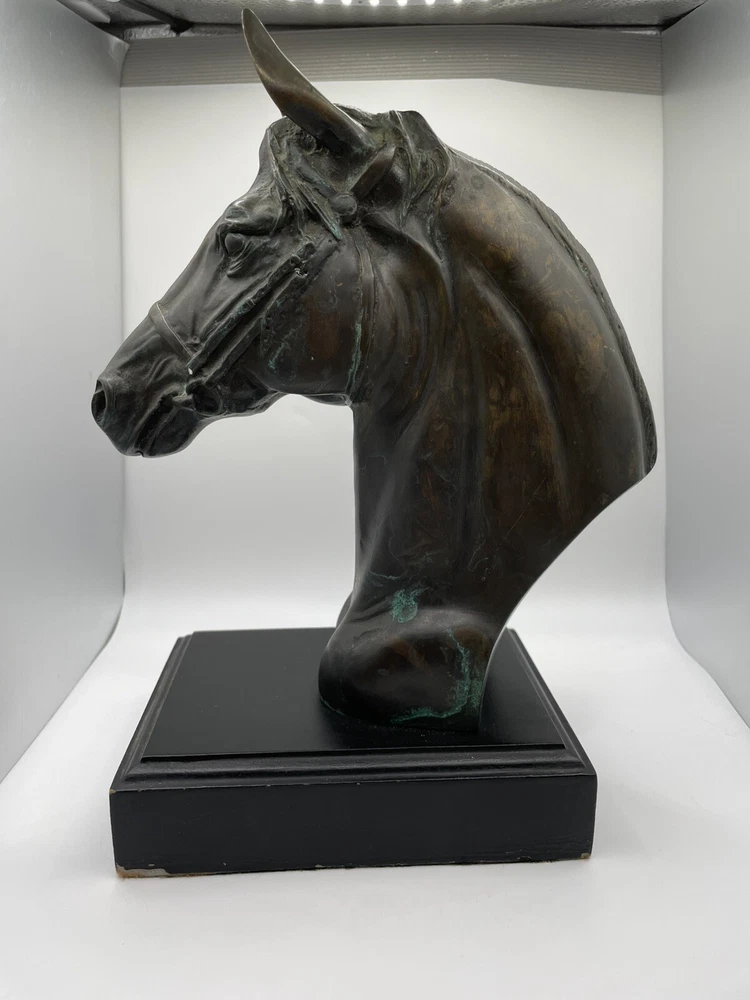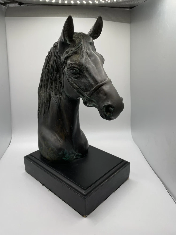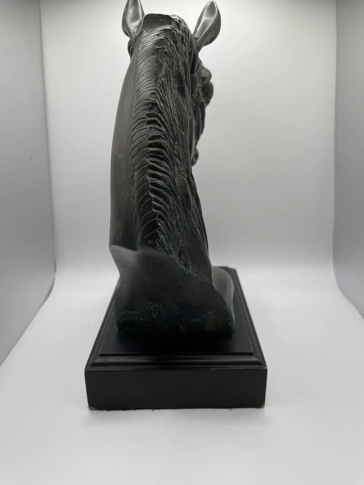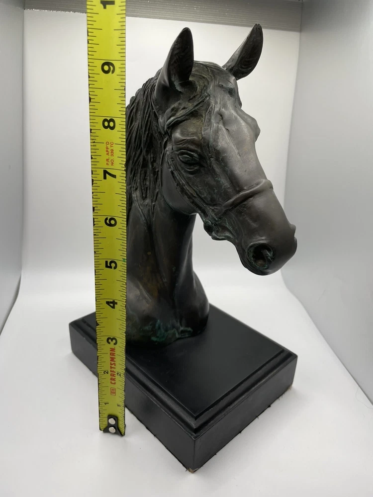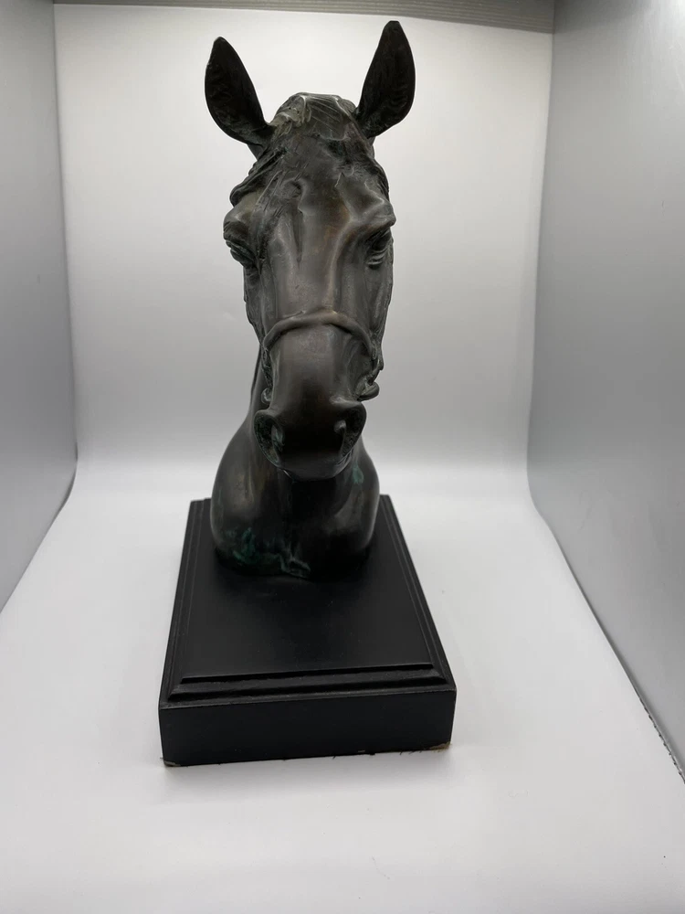 Beautiful Horse Bust Detailed Cast Copper/Brass 10" tall Black 4.5" x 6" base Beautiful (I believe to be copper/brass) horse bust. Very detailed and intricate! Base itself has some cosmetic issues. Please review all photos and feel free to reach out with any questions. THANK YOU *FAST, FREE AND SAFE SHIPPING*