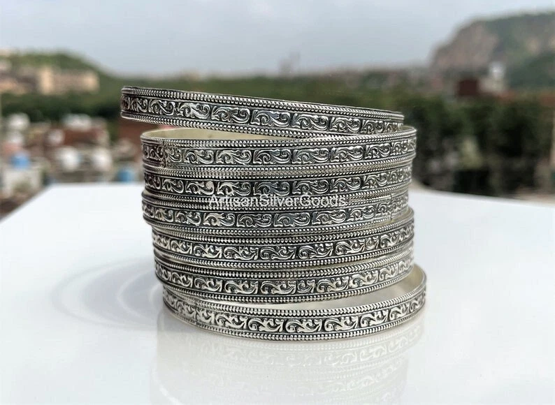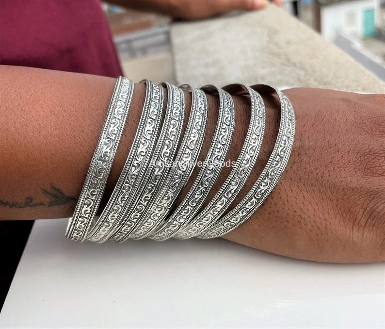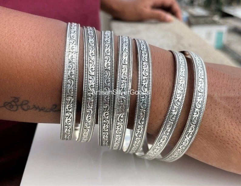 Welcome To My Shop Beautiful Silver Bangle Set Handmade 925 Sterling Silver Bangle set 7 day Bangle Simple Set Bangle 7 Set Off Bangles Stacking Bangles All the jewelry made of 925 Sterling silver Handmade Jewelry We make the jewelry with lots of love 100% Quality Jewelry You will get well finished jewelry **************************************************************** Shipping Details: We ship the order through Dhl, UPS shipping service which is track able. We accept the expedited shipping service. ***************************************************************** IF YOU HAVE ANY QUESTION PLEASE FEEL FREE TO ASK